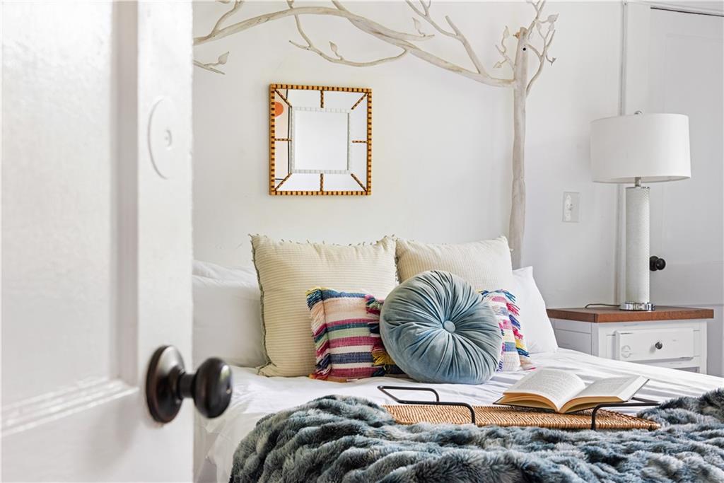 PROMOTION: The listed rate is for a 12-month lease where the tenant pays additional utilities of $300 utilities and this includes high-speed internet! While we are flexible on shorter-term stays and are happy to accommodate, the rates & utility charges WILL differ. If you are displaced due to a hurricane or local event, please flag this. We are here to help. Minty Living is Atlanta's preferred housing provider for many insurance companies. Please inquire if you need more than a month. IF YOU ARE HERE FOR FILM AND PRODUCTION PLEASE FLAG THIS! We are the preferred provider for many of the studios. THIS IS A FURNISHED RENTAL. Let this funky feline apartment be your home away from home! A luxe living area, well-appointed kitchen, and separate dining room welcome you to relax or entertain in style. Down the hall lies the chic bedroom, spacious office with daybed (a WFH dream), and shared bath with a turquoise clawfoot tub that is not to be missed. Located on a quiet street just a couple of blocks from all of the action that Inman Park and Little Five Points have to offer, this hip spot is truly the best of both worlds. The park next door provides plenty of green space, a view of which can be enjoyed from the second story deck. Lucky Leopard is the purr-fect perch to explore Atlanta from! 1x queen bed, 1x daybed Washer/dryer in unitUltra fast WiFiSmart TVRing security system Our other standard amenities really put life in a cramped, cookie-cutter hotel room to shame: you'll have a full kitchen, laundry, fast WiFi, a smart TV, and total privacy for your stay. Our homes all feature Ring doorbell cameras and custom-coded keyless entries, so you can rest easy knowing your security is top notch. You won't be shelling out big bucks each day to park in a twisty multi-story deck either, as all of our properties have free off- or on-street parking. Our bread and butter is providing medium-term housing for productions filming in and around Atlanta. Whether you're a PA or an A-lister, we believe everyone deserves a lovely place to call home after a hard day (or night) at work. Our chic and well-appointed pads make us the preferred vendor of choice for studios like Apple and Disney. We manage properties around the city but primarily on the east side of Atlanta, from Virginia-Highland down to Grant Park. Our specialty is Inman Park, where we love to live, work, and play! Our neighborhoods are all unique in their architectural styles and cultural offerings, but their geographic convenience, walkability, and safety are standard and guaranteed to please. We hope you'll allow Minty Living the opportunity to host you in style and comfort on your visit to Atlanta. Safe travels, y'all!"