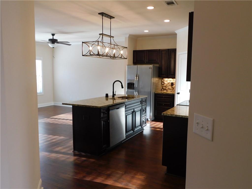 TOWNHOUSE IN PARKVIEW SCHOOL district. Great Room and Island kitchen with walk in pantry. Huge primary bedroom for King Size furniture and sitting area, trey ceiling and ceiling fan/light. Primary bath has granite counter tops, tile floors and shower with separate garden soaking tub. Hall bath also has granite tops and tile floors. full 2 car garage with door opener. Great Killian Hill address close to private schools, finished basement with a bedroom and a full bathroom, deck on the main floor. Lots of space!!