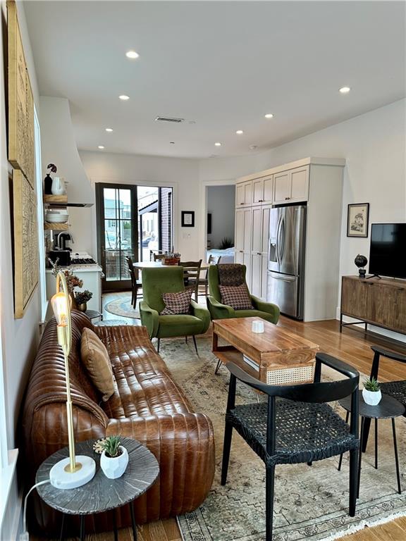 Your home in Trilith awaits! Sitting on picturesque Triangle Park, this townhouse has 4 bedrooms, 3.5 bathrooms and comes fully furnished! Brightly lit end unit boasts hardwood floors throughout, stainless steel appliances, & quartz countertops. Master on main en suite features a SleepNumber king bed. Three bedrooms upstairs furnished with one full bed, two twin beds, and an office with a queen size murphy bed. Extra closet storage built into the flex space. Drop down attic offers plenty of storage. Two porches, one with outdoor furniture to enjoy the beautiful park right out the front door. Two convenient offstreet parking spaces attached to the back door. All utilities and HOA amenities (dog park, resort pool, basketball & tennis courts, etc are included! Walkable to all Trilith has to offer: restaurants, shopping, retail, parks, festivals, etc. No management company—work directly with owners who live in the neighborhood. HOA requires minimum three month lease. Rent includes all utilities and HOA amenities. Pets considered. First month rent, $100 HOA rental fee, plus security deposit due upfront. No smoking on premises. Credit and background check required.