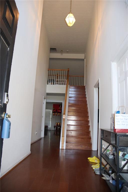 Well maintained 4-sided brick home on cul-de-sac, with 3 bedrooms and 2.5 baths. Hardwood floors on main and upstairs hall way. 2-story family room with cozy fireplace. Kitchen consist of granite countertops, designer backsplash, stainless steel stove, and lots of cabinets. Separate dining room with doors that can be used as office or 4th/guest bedroom. Owner suite with trey ceiling, bathroom with dual vanities, separate shower, tile floor, garden tub and huge walk-in closet. Spacious secondary bedrooms each with 2 closets. Deck with extra storage room and a private back yard.