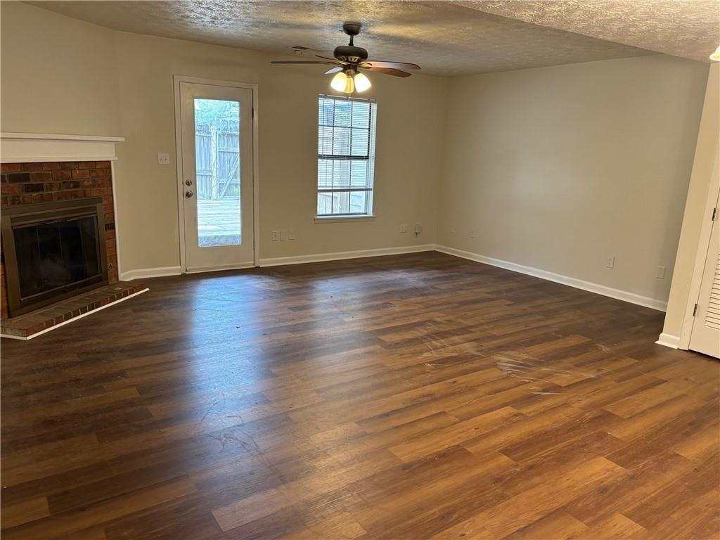 Adorable Town Home in a quiet community with easy access to I-75, KSU & Lake Allatoona. The home features a Front Facing Kitchen with black appliances (dishwater, microwave, gas stove and refrigerator) disposal, laundry closet, dining room/living combo with ceiling fan with accessible to covered back deck overlooking large, fenced back yard. Upper-level features master bedroom & master bath with tub/shower combination and 2nd bedroom with private bath. Great for roommates. rare town home with ample parking with 2 cards in front and as many as 4 behind fenced back yard.