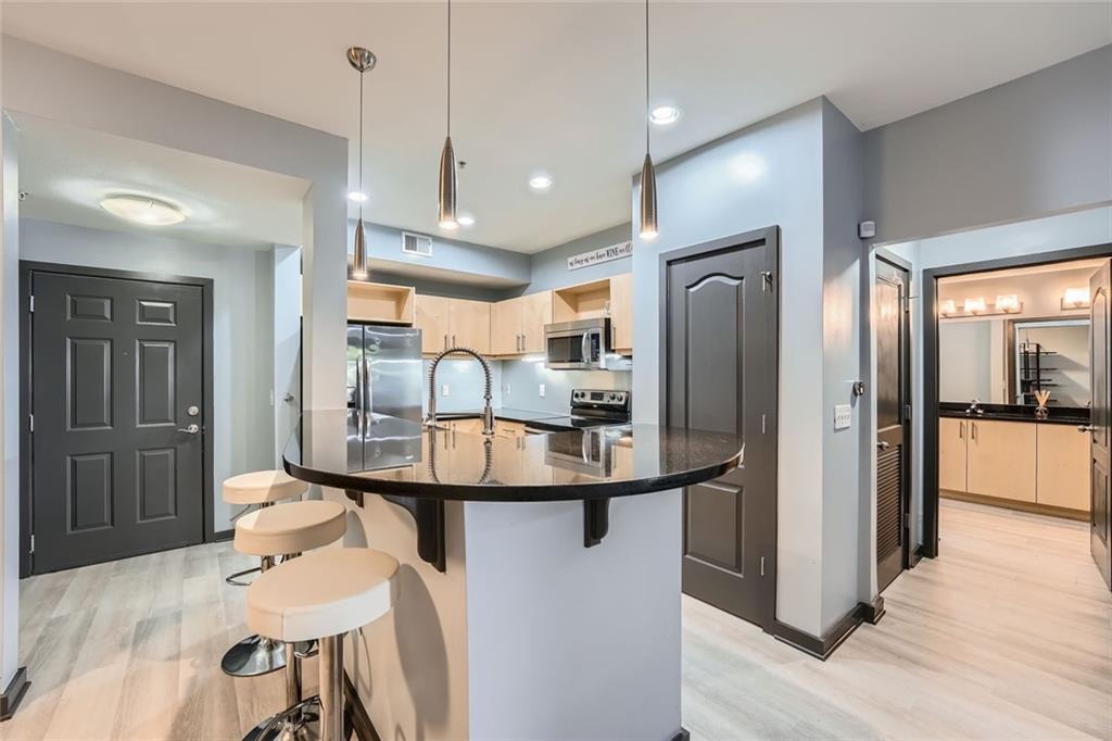 Prime Location in Atlantic Station! POOL- GYM-COVERED GATED PARKING-ASSIGNED PARKING-STORAGE!! WALK TO ATLANTIC STATION ATTRACTIONS- This rare first-floor condo offers direct patio access to 17th Street with a unique setback from the street, providing both convenience and privacy. With 868 sq. ft. of well-designed space, this one-bedroom, one-bath unit is perfect for those who want an easy lifestyle. Step out your back door to meet your Uber or receive deliveries effortlessly, and enjoy a quick walk across the street to Atlantic Station’s shops and restaurants, including Publix and Target. Inside, you’ll find a well-maintained home with hardwood floors in the kitchen, dining, and living areas, granite countertops, stainless steel appliances, a spacious walk-in closet with laundry access from the bathroom, and a private patio overlooking the Millennium Gate and Commons pond. 1 dedicated parking space. The Element community offers secure gated parking, a refreshing pool, a private gym, stylish common areas and meeting rooms, and a secure delivery locker room for all your packages