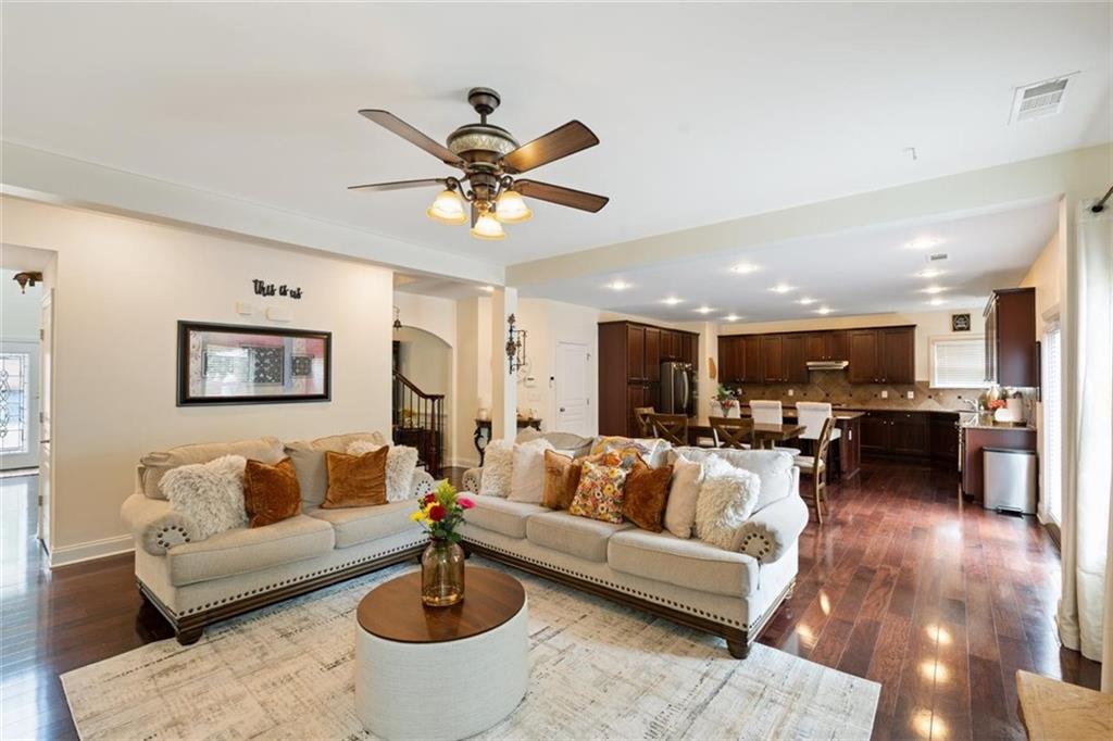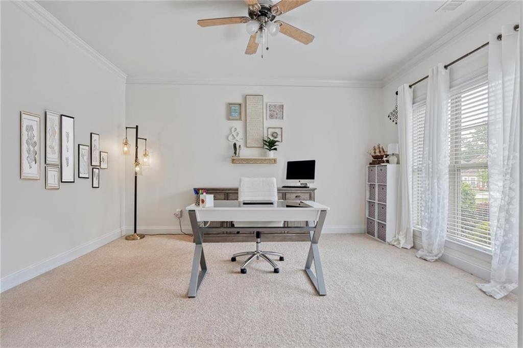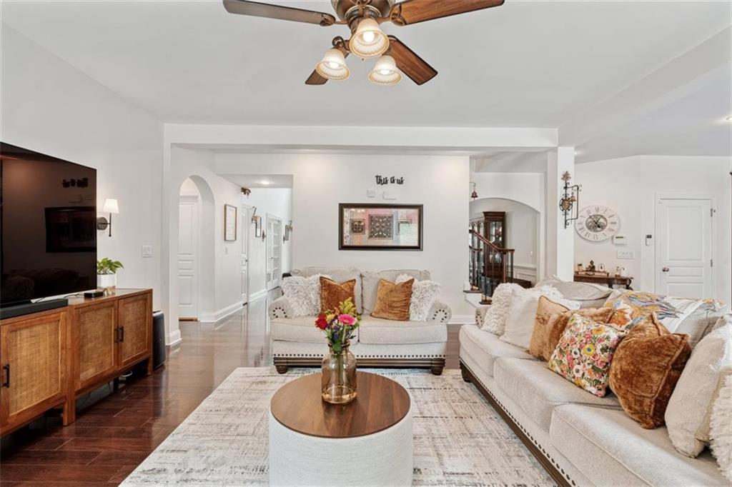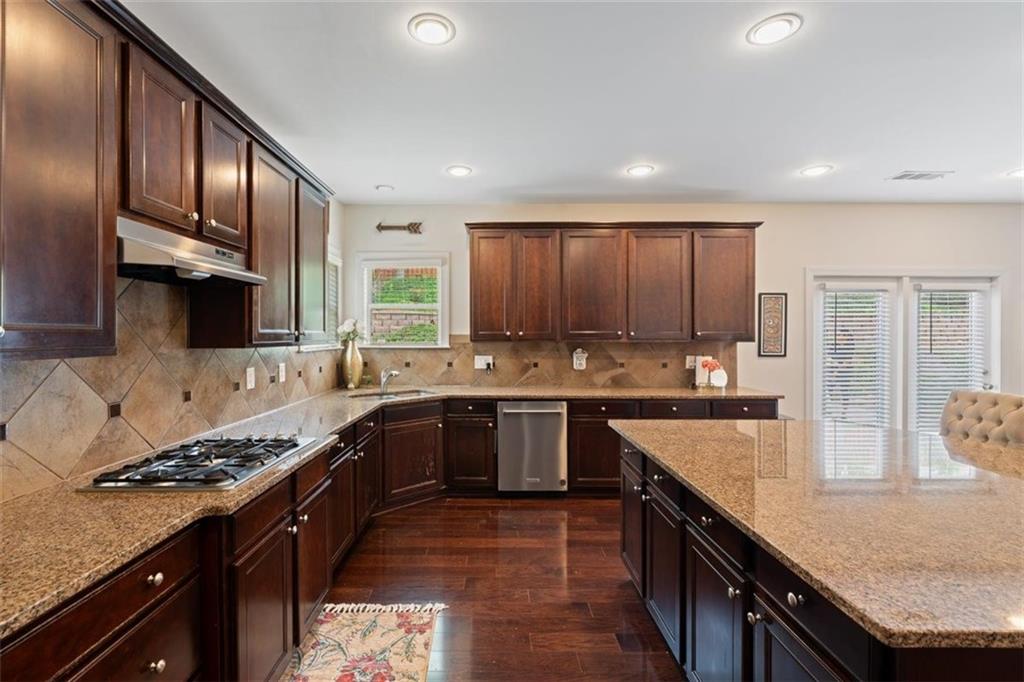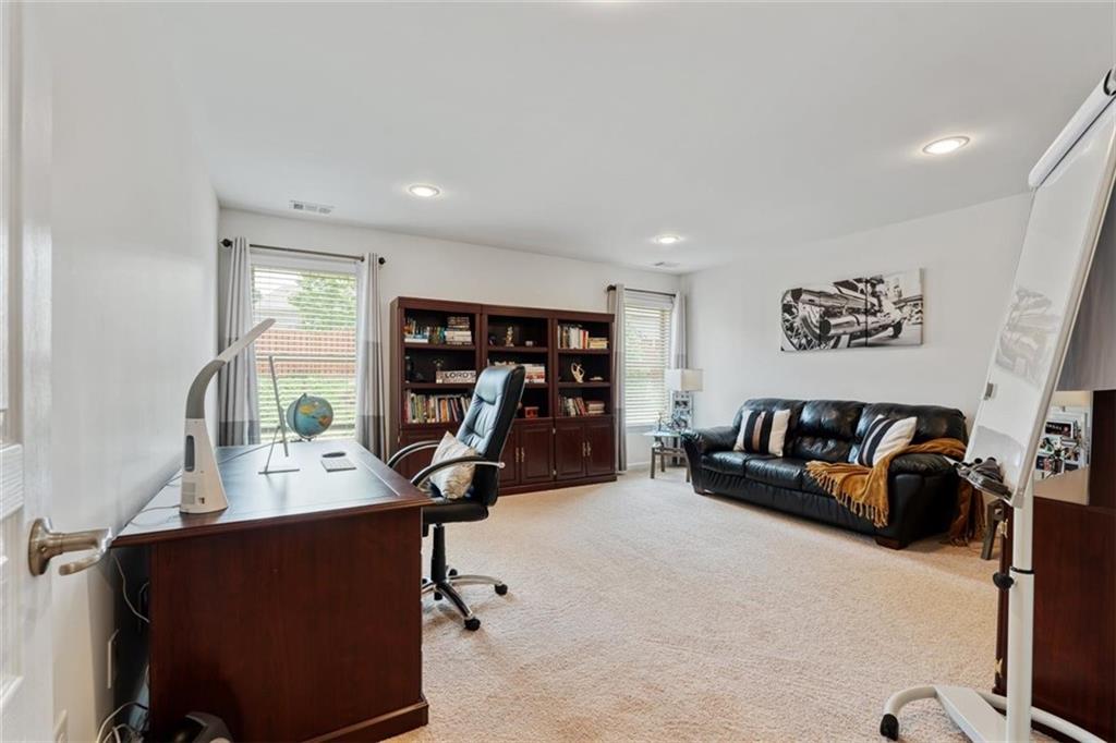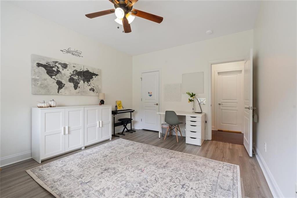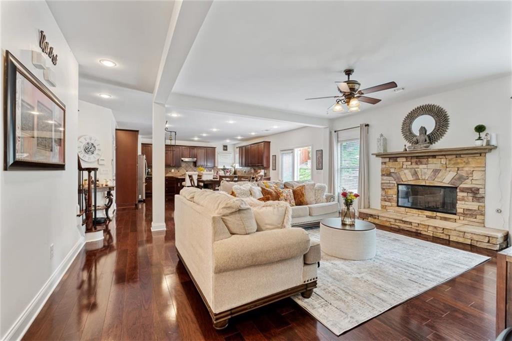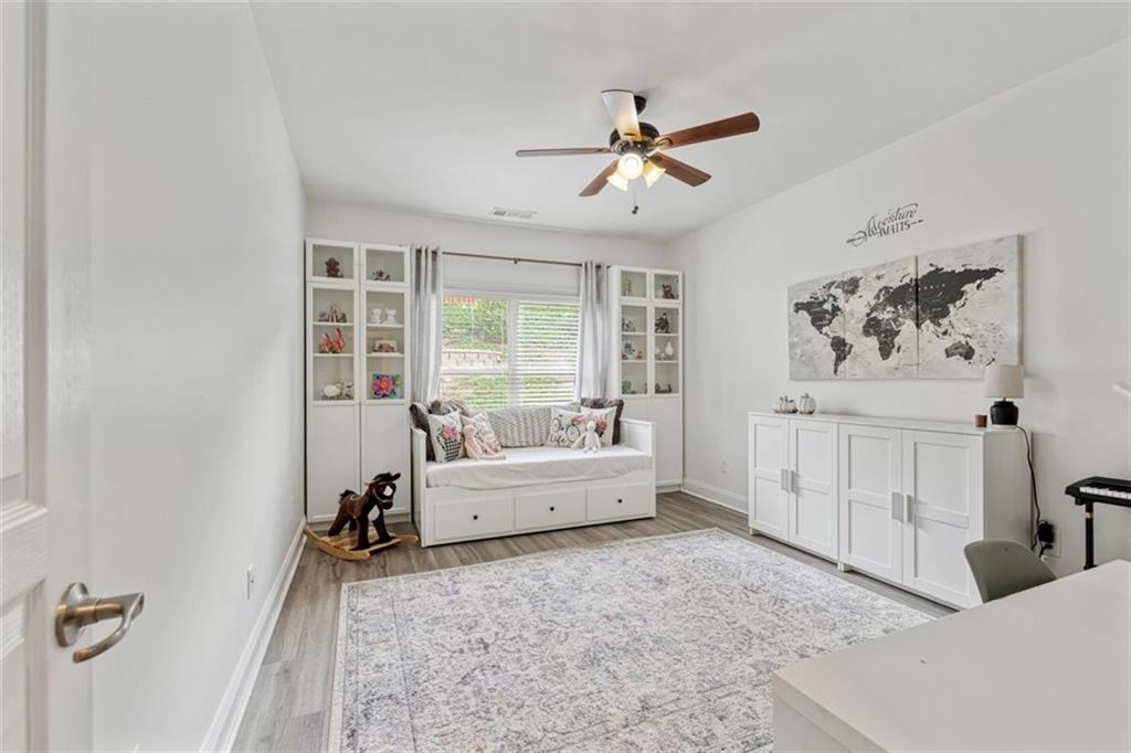 Discover this spacious and beautifully maintained 5-bedroom, 4-bathroom home located in the highly sought-after Centennial Lakes community in prime Woodstock. This modern residence offers the perfect blend of comfort, convenience, and resort-style living—just steps away from shopping, dining, top-rated schools, and with quick access to major highways. Step inside to a bright and open living area with a cozy fireplace, connected to a beautiful kitchen perfect for entertaining. Also, on the main level, there is a welcoming eat-in kitchen with a large kitchen island featuring granite countertops, stainless steel appliances, a large pantry with plenty of storage . There is luxurious hardwood flooring throughout the entire main level with a guest bedroom and an office/study. The primary suite upstairs is a peaceful retreat with vaulted ceilings, an oversized his and her walk-in closet, and a private bathroom featuring, double vanities, a soaking tub, and a separate shower. Addition to that are three additional bedrooms, with 2 full bath, and a versatile loft space which can be used as a second office, media room or playroom. The laundry room is conveniently located on the upper level. Outside, you'll find an inviting landscaped yard perfect for summer gatherings and outdoor fun. Enjoy resort-style amenities like a Jr. Olympic pool, splash pad, tennis courts, basketball, pickleball, playgrounds, trails, and more. We will provide instructions on 3rd party Tenant Screening access. Credit Check and Criminal Records screenings are mandatory. Tenant's combined Income should be 3 times monthly rent. All tenants 18+ must fill out application. Application fees are non-refundable: $55.00 for an individual and $65.00 for a married couple.
