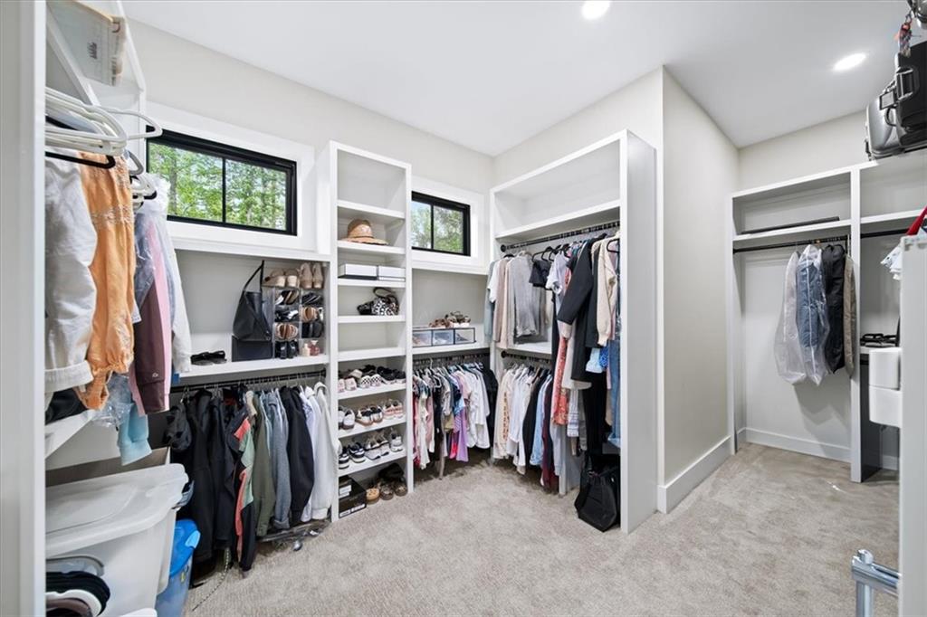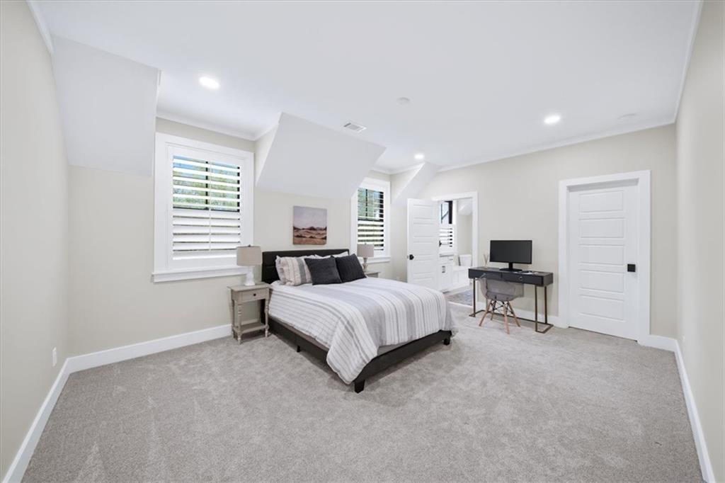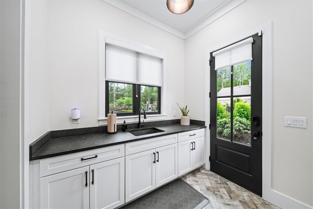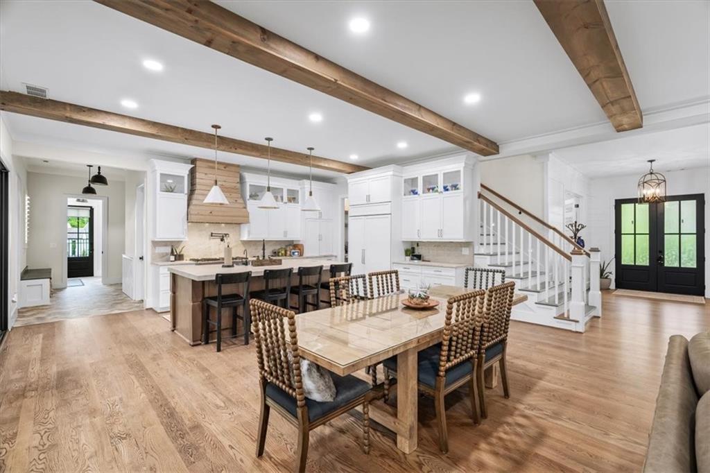 Elegant modern farmhouse located on a quiet cul-de-sac in The Collection at Trinity. Sitting on over 2 acres, this custom built home by Hunt Homes is warm and inviting with a front porch perfect for rocking chairs, overlooking a lush green front yard. Step inside the front entrance to newly refinished solid oak hardwood floors and handsome wood paneling. To the left is a cozy home office with custom shelving and a built-in desk, and can be used as a formal living or dining area. A spacious open concept kitchen, dining and living room is tastefully designed and ideal for entertaining. The impressive chef's kitchen features Founders custom cabinetry, Taj Mahal quartzite, a stunning Le Cornue range, Subzero refrigerator. and hidden Appliance cabinet. Along with ample storage space in the kitchen, the home offers a walk-in pantry with custom shelving, plus a butlers pantry and an additional storage closet. The spacious living area opens out to a gorgeous screened in porch and walk-out saltwater pool and spa. The generously sized Primary Bedroom is perfectly tucked away on the Main Level with a bathroom featuring an oversized shower and soaking tub and a roomy walk-in closet with tons of shelving. The main level provides an additional Guest Bedroom and beautifully finished bathroom, great for accommodating multi-generational family members, plus a powder room for visitors and a separate half bath that services the pool! Upstairs offers 4 secondary bedrooms and 2 full baths - one bedroom is fitted with glass doors and makes for an excellent workout room or quiet space for kids to do homework. The upper level also offers an incredible 1,100 square foot BONUS room: perfect for a media room and play room! This home is an entertainers dream with a flat, fully turfed and fenced backyard beyond the heated saltwater pool. The property also offers a SECOND detached building measuring 40' x 60' with 3 bays, one with a 14' tall door for RVs. This home is beautifully situated on a quiet street, surrounded by undisturbed pastures. It's the perfect setting, with highly rated schools, and located just minutes from Milton, Crabapple, and so much more!