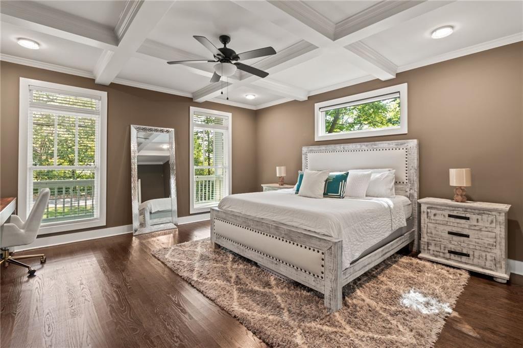 Welcome to this stunning 5-bedroom, 3 1/2 bathroom home, boasting over 3,000 sq. ft. of luxurious living space, perfectly situated in the sought-after downtown Norcross area! Built in 2018, this like new, beautiful home offers modern design and convenience, all within a short walking distance to charming downtown Norcross and three nearby parks: Thrasher Park, Discovery Garden Park, and Lillian Webb Park. Nestled on one of the most private and quiet streets in the area, this home features a private backyard, perfect for relaxing or entertaining. Inside, you’ll find high ceilings and beautiful coffered ceilings in the living room, which opens to a spacious, modern kitchen, creating the perfect flow for entertaining. The oversized primary bedroom is a true retreat, complete with a spa-like bathroom and a walk-through design connecting the bathroom and walk-in closet to the laundry room for added convenience. Upstairs, large secondary bedrooms provide plenty of space, each with very large closets, and two of the bedrooms open up to a second-story balcony, perfect for enjoying the outdoors. This home is truly a gem in the heart of Norcross. Act fast—this one won’t last long!