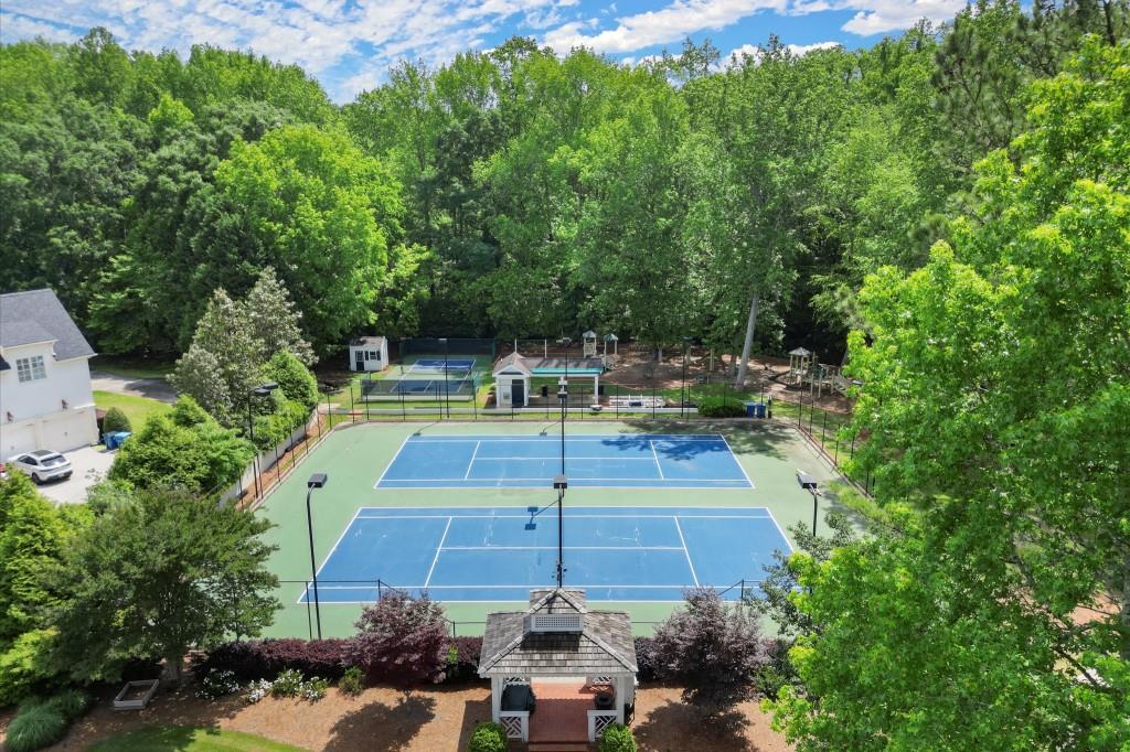 Located in a prestigious guard-gated community of Sweet Bottom Plantation, this exceptional estate offers a truly unique and open floor plan that seamlessly blends luxury, comfort, and function. Set on over an acre of level land, the property is ready for your dream pool design and offers ample outdoor space for entertaining or relaxing. The main floor features up to three spacious bedrooms, each with its own ensuite bathroom, including a luxurious master suite on the main with private access to a covered patio ideal for peaceful mornings or winding down in the evening. The home's layout flows beautifully, highlighted by a stunning dining room and an inviting living room that provide elegant spaces for both formal gatherings and casual entertaining. The heart of the home is a family-centered kitchen with a breakfast area and keeping room, complemented by one of the three cozy fireplaces throughout the home. A richly appointed wood-paneled study adds warmth and character, while a generous front patio invites you to enjoy quiet afternoons with a glass of lemonade. Upstairs, you'll find three additional bedrooms, two full baths, and a large living room that creates a flexible, private wing perfect for guests, teens, or multigenerational living. This home offers an unbeatable central location, with convenient access to top schools, shopping, parks, and major commuting routes. A rare combination of elegance, space, and thoughtful design, this estate is ready to welcome you home.