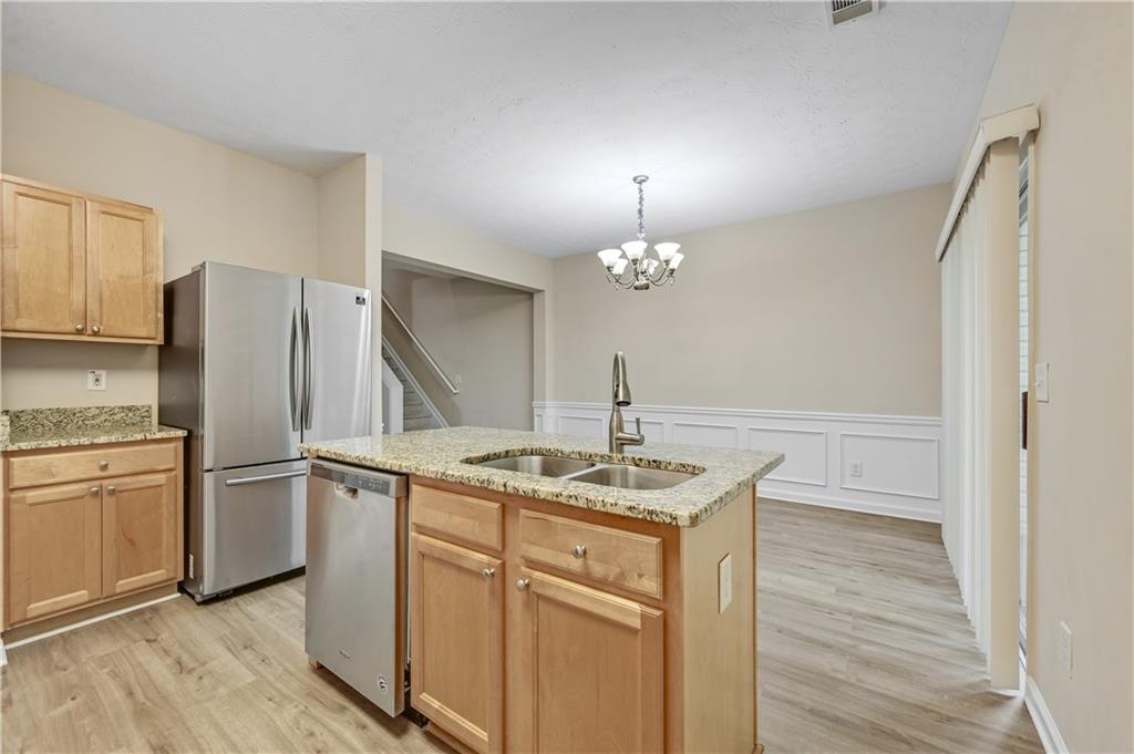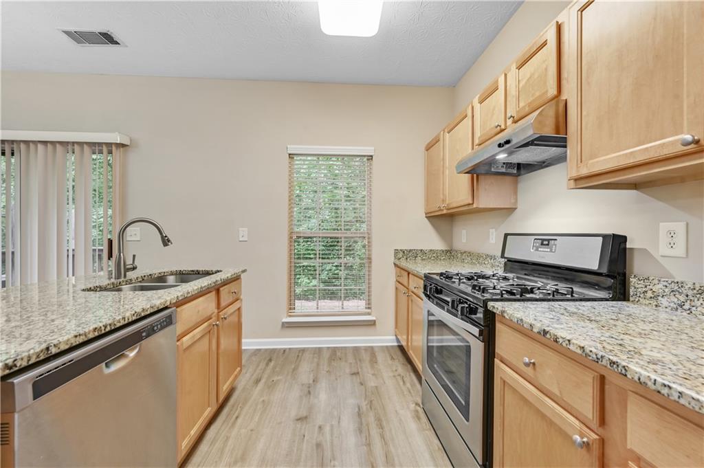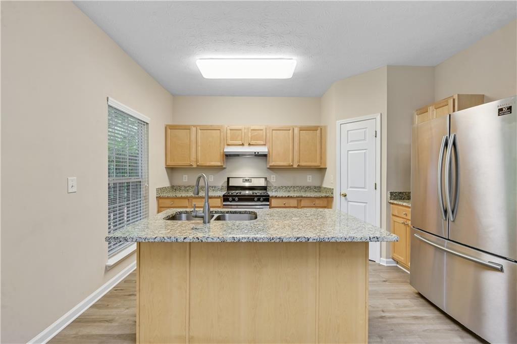 MOVE-IN READY!! This Beautiful End-Unit Townhome is located in a fantastic area and boasts hardwood floors throughout the main level, as well as in the master suite and hallway upstairs. The two secondary bedrooms have cozy carpets. The spacious master suite features a sitting area and hardwood flooring, with ample natural light streaming through numerous windows. The master bath includes a garden tub, separate shower, double vanity, and a large walk-in closet. The kitchen is fully equipped with stainless steel appliances, refrigerator, dishwasher, gas cooktop/oven, island, granite countertops, maple cabinets, and large walk-in pantry. Laundry room is conveniently located upstairs. This townhome is located in a great school district and is close to major highways, arena, malls, retail shops, fitness centers, and restaurants. The community offers amenities such as a fitness center and swimming pool. VIEWINGS ARE BY APPOINTMENT ONLY. Property is currently occupied by tenant and House is available for lease from June 1st, 2025. CREDIT 700+ Required.
