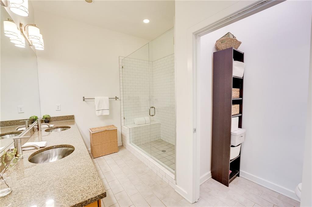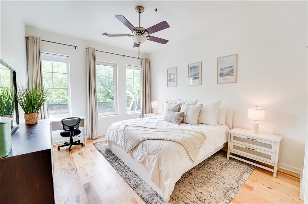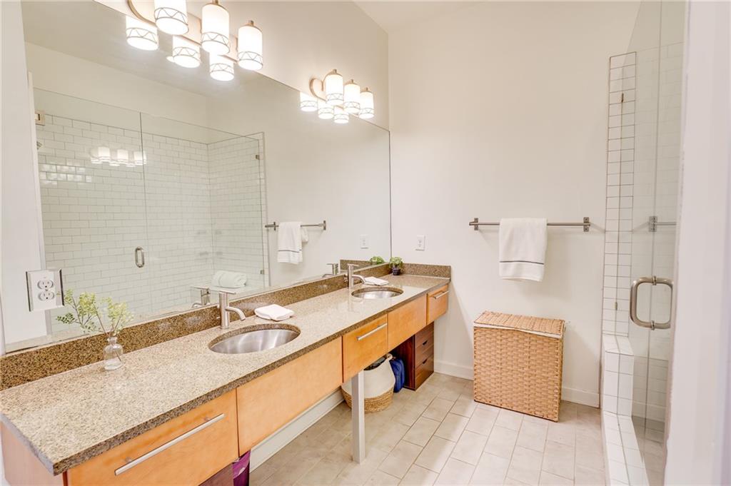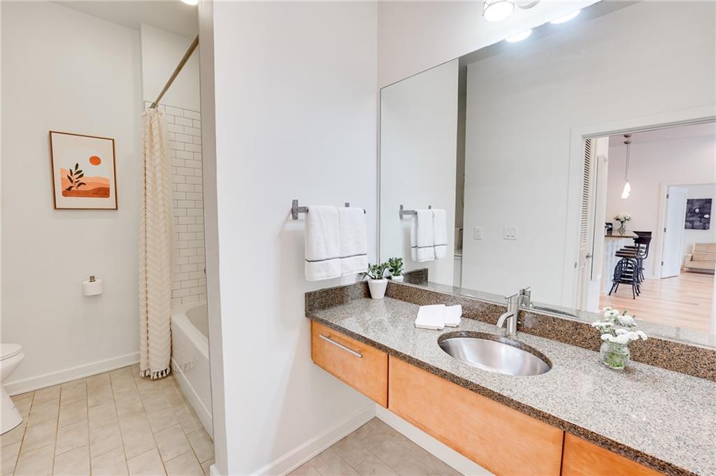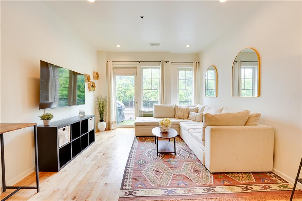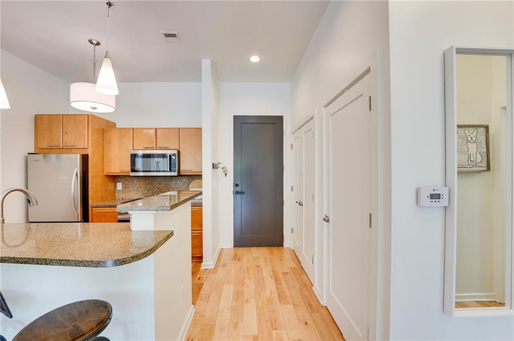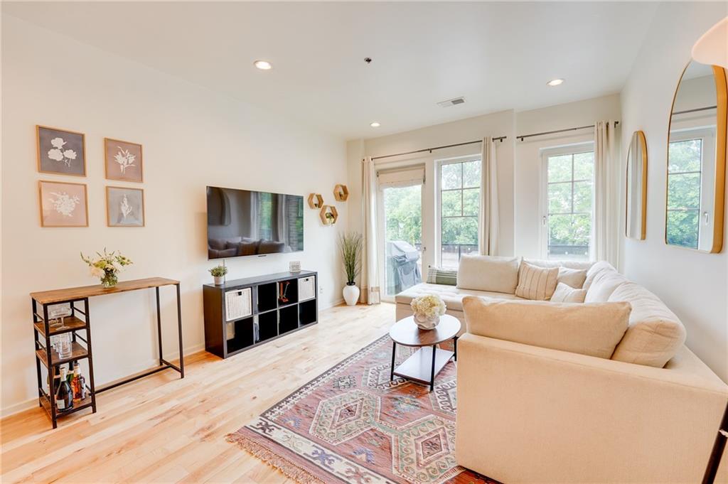 Come make this spacious and light-filled 2-bedroom, 2-bathroom condo offering modern comfort and unbeatable convenience your home! The open-concept layout features large windows that bring in abundant natural light and a neutral color palette that complements any décor. The living area opens to a private, oversized balcony—perfect for relaxing or entertaining. The kitchen is designed for both functionality and style, with granite countertops, stainless steel appliances including a gas range (2021), wood cabinetry, and a bar-height counter with seating. Overhead, three pendant lights provide ambient lighting, enhancing both function and charm. The primary suite includes a double vanity and a sleek glass-enclosed tiled shower for a spa-like feel. Additional features include gated garage parking with two assigned spaces, in-unit laundry, and light hardwood flooring throughout. Conveniently located near shopping, popular restaurants, parks and schools. This home is perfect for anyone seeking the Brookhaven lifestyle. Move-in ready and minutes from all that Brookhaven has to offer!