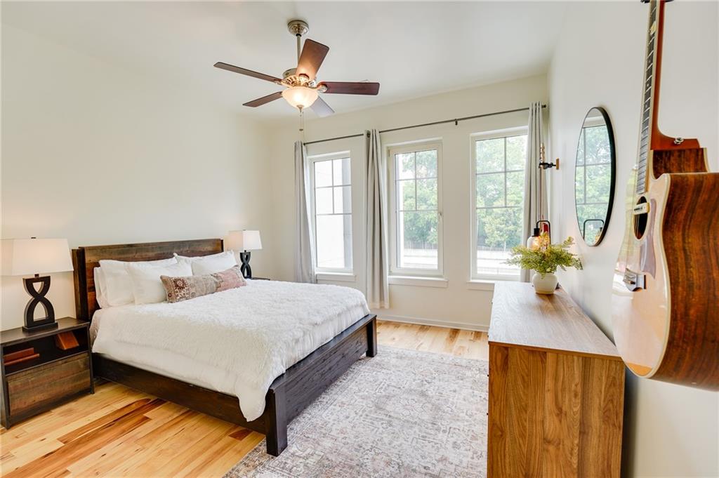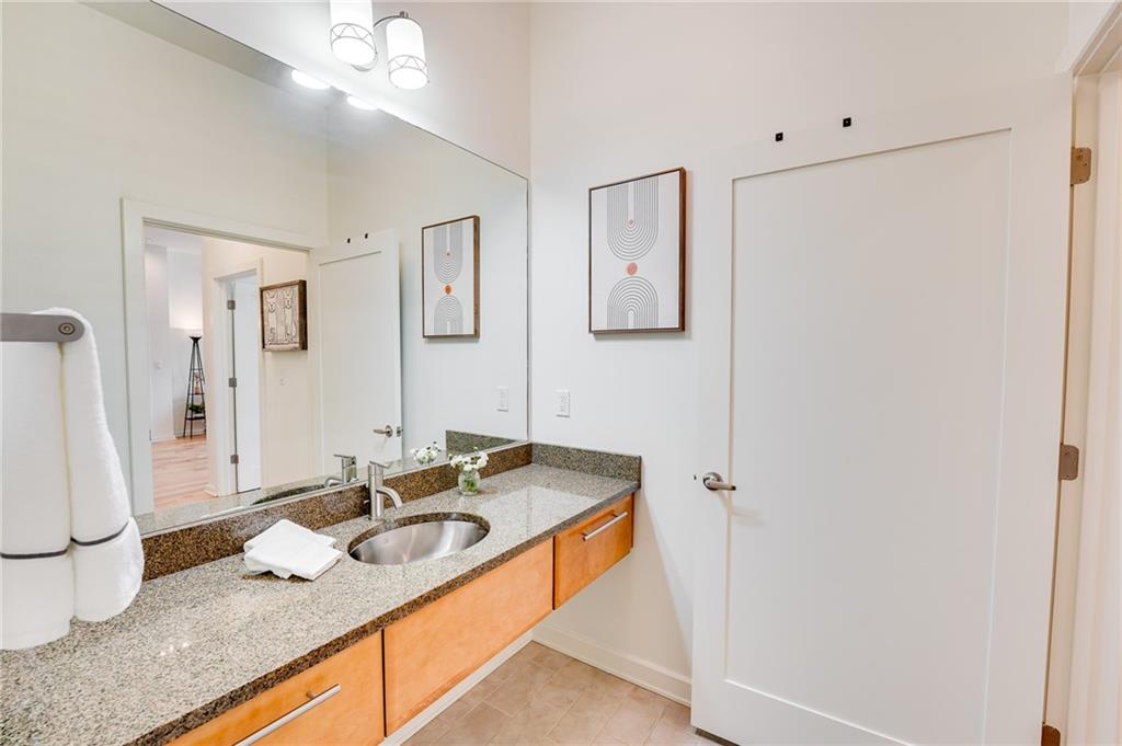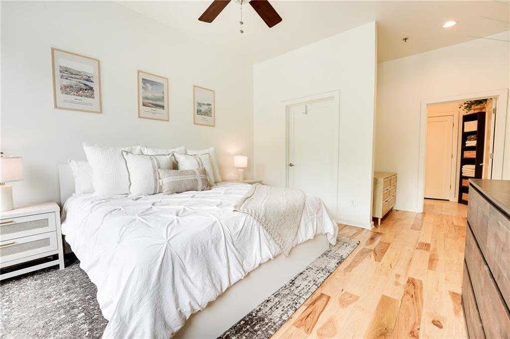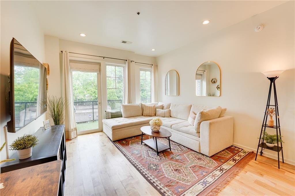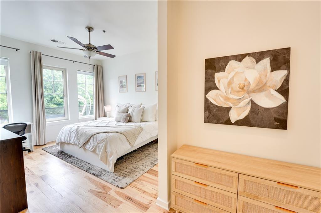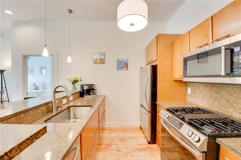 Come make this spacious and light-filled 2-bedroom, 2-bathroom condo offering modern comfort and unbeatable convenience your home! The open-concept layout features large windows that bring in abundant natural light and a neutral color palette that complements any décor. The living area opens to a private, oversized balcony—perfect for relaxing or entertaining. The kitchen is designed for both functionality and style, with granite countertops, stainless steel appliances including a gas range (2021), wood cabinetry, and a bar-height counter with seating. Overhead, three pendant lights provide ambient lighting, enhancing both function and charm. The primary suite includes a double vanity and a sleek glass-enclosed tiled shower for a spa-like feel. Additional features include gated garage parking with two assigned spaces, in-unit laundry, and light hardwood flooring throughout. Conveniently located near shopping, popular restaurants, parks and schools. This home is perfect for anyone seeking the Brookhaven lifestyle. Move-in ready and minutes from all that Brookhaven has to offer!