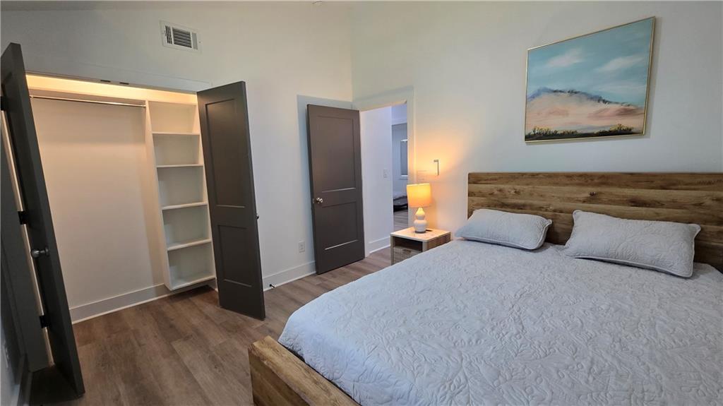 Welcome to this charming modern ranch! Designed with an open-concept layout, this stunning 3-bedroom, 2-bath home seamlessly combines comfort and style. The spacious kitchen, featuring sleek marble countertops and stainless-steel appliances, overlooks the inviting family room, where an electric fireplace creates a warm ambiance for cozy evenings. Hardwood floors extend throughout the entire home, leading to three generously sized bedrooms. The owner’s suite boasts a master bath with contemporary finishes and a walk-in closet for added convenience. Step outside and enjoy fresh gardening in your private backyard, or unwind in the serene front yard beneath its lush, towering trees. Located just 15 minutes from the Mercedes-Benz Stadium and moments away from ATL Airport and downtown, this home offers the perfect blend of tranquility and city life. Schedule your private tour today!