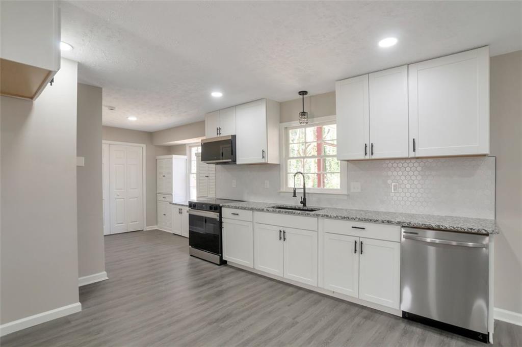 Amazingly Gorgeous and spacious 4 bedroom, 2.5 Bath Single Family Home for RENT. Home features; separate living and dining areas, Gourmet Kitchen, Pantry, Laundry room, Brand New Appliances, New HVAC and updated insulation to ensure modern comfort and energy efficiency. Home has basement with exterior exit, perfect for storage or extra living space. Awesome setting with sleek, contemporary finishes throughout. Exterior has sprawling backyard, complete with a covered deck overlooking serene stream. Home also features 2 car garage with auto garage door opener and long drive way. Home is in prime location and close to schools, public transportation, Shopping and Stone Mountain Park. Don't miss the opportunity to lease this lovely home.