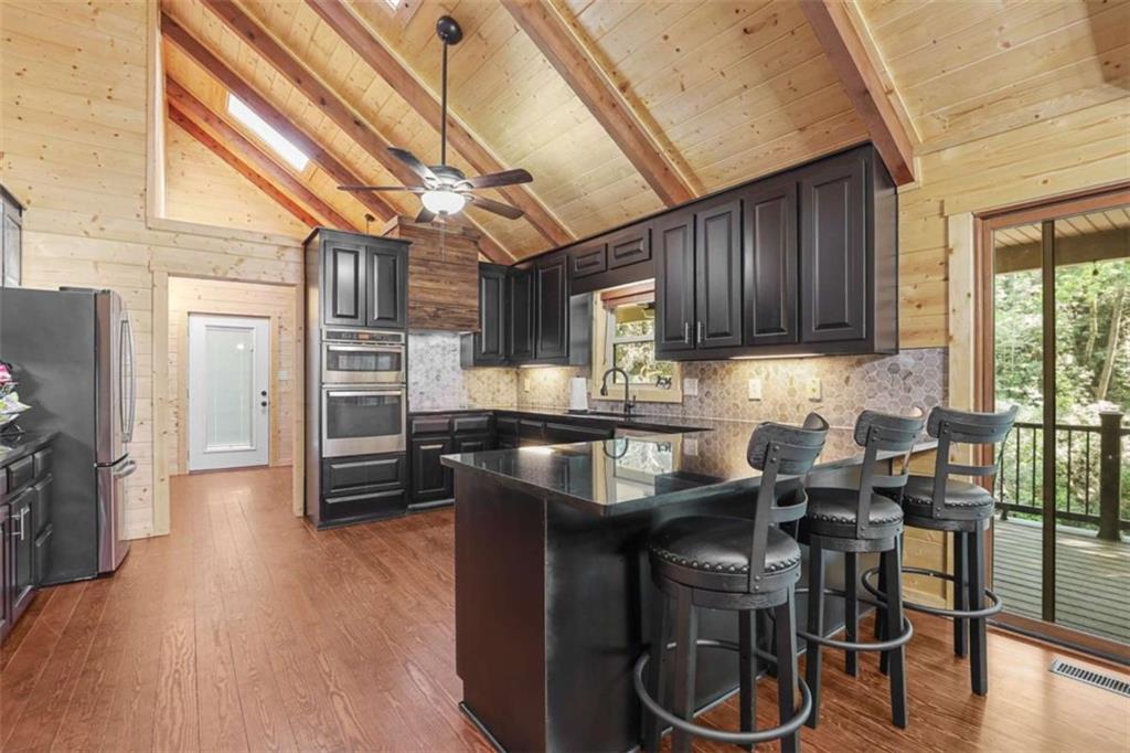 Gentle Riverside Retreat! Nestled on the banks of the Soque River, this beautifully remodeled and fully furnished 3-bedroom, 3-bathroom home features a bonus room and two spacious living areas, offering a rare opportunity to enjoy level riverfront living with both scenic views and the tranquil sound of flowing water from the comfort of your home. The river is just steps away with easy entry, wadeable water stocked with trout; this property is a true outdoor escape. The main level features vaulted ceilings and newly added tongue-and-groove walls as part of the home's extensive renovation. A stunning open-concept kitchen is highlighted by sleek black cabinetry, granite countertops, and stainless appliances. The adjacent living and dining areas flow seamlessly, creating a warm and inviting setting for everyday living or entertaining. All three bedrooms are comfortably situated on the main level, while the fully finished basement offers additional living space, a second fireplace, and endless flexibility for guests, recreation, or work-from-home needs. The third full bathroom is also located in the basement, adding convenience and function to the lower level. This home has been extensively updated, including new siding with house wrap, new windows, new Trex decking, updated bathrooms, new and refinished flooring, a new garage door, added insulation, and sealed skylights. Roof screws and seals have also been replaced. New Outdoor fire pit and walkway. Almost all doors have been replaced. New HVAC & ducts in basement. High-speed HEMC Trailwave internet ensures you stay connected in this peaceful riverfront setting. Located just 14 minutes from downtown Clarkesville, you're close enough to enjoy local shopping and dining, while still far enough away to experience the peace and privacy that makes this home truly special.
