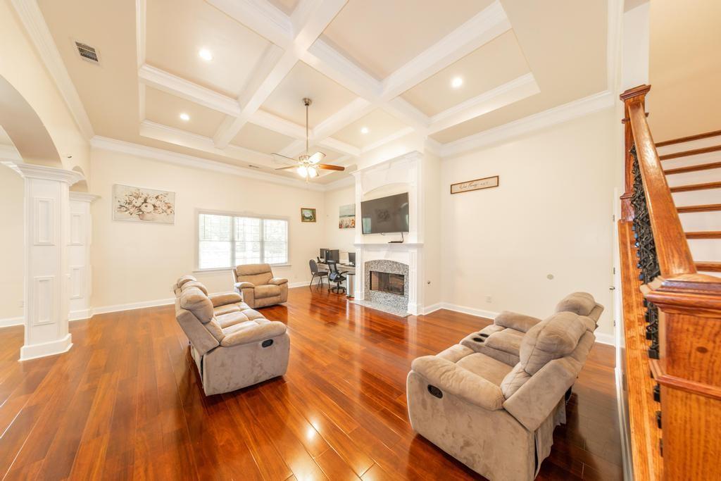 Welcome to this extraordinary custom-built estate, designed and constructed by its original owner with spacious living and long-term comfort in mind. Boasting over 5,000 square feet of thoughtfully planned interior space, this impressive 7-bedroom, 6.5-bath brick residence offers the perfect blend of luxury, functionality, and versatility—ideal for large families, multi-generational living, professionals working from home, or anyone seeking expansive suburban tranquility. Sited on a 3.25+ acre lot, the property includes over 2 acres of fenced, street-facing land—potentially re-zonable for general commercial use, offering exceptional flexibility for future development, a home-based business, or investment potential. Although part of the Marshas Vineyard community, this property is NOT subject to the HOA. Arrive via an overwide driveway with ample parking, leading to a professionally landscaped rose garden front yard and stately entrance. Inside, a soaring 2-story foyer welcomes you, flanked by a formal dining room, a den/sitting room, and a flowing layout perfect for entertaining and everyday living. The heart of the home features a chef’s kitchen with breakfast area that opens into the grand family room, centered around a cozy gas/wood-burning fireplace and accented by coffered ceilings. Adjacent is a spacious screened-in sunroom with built-in grill and sink—ideal for year-round entertaining. The thoughtfully designed main floor includes a luxurious primary suite, complete with spa-like bath, an additional bedroom w/full bath and a guest half bath in the hallway on one side. While the opposite wing houses one en-suite bedroom, two additional oversized bedrooms, an extra full bath plus a spacious laundry room and mudroom for practical daily use. Upstairs you will find an additional two bedrooms, one full bath, huge loft and massive attic which opens up on the same level. No attic stairs makes it extremely convenient if you'd want to finish for additional rooms or just keep it for storage. Whether you're accommodating a large household or need multiple home office setups, this home's 7 large bedrooms provide endless configuration possibilities. Some of the home's features include: Custom oversized walk-in pantry that doubles as a hurricane-rated safe room, Wet bar station with wine fridge, Three HVAC systems for zoned comfort, Spray foam insulation throughout—including attic, garage & shed—for remarkable energy savings (electric avg. $90/month winter, $250/month summer), Luxury Cherry Pergo flooring, tray & vaulted ceilings, Tray and Vaulted Ceilings throughout, Three-car garage (35’ wide x 24’ deep, 10’ ceilings, 8' garage door) with second laundry area, a 14’ x 25’ storage shed, fully insulated, and Ready-to-build pool area with dedicated breaker & outdoor full bath. Conveniently located just off Jonesboro Rd, minutes from shopping, dining, and suburban amenities. A really stunning home with endless possibilities.