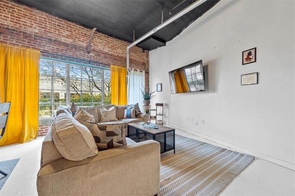 SELLER IS OFFERING $10,000 IN CLOSING COSTS PLUS A 1-YEAR HOME WARRANTY (up to $600 value). Live on the Beltline in historic Reynoldstown! This spacious 1BR/1BA ground-floor loft in A&P Lofts offers soaring 12’ ceilings, exposed brick, polished concrete floors, and original mushroom columns. Located in a building listed on the Georgia Register of Historic Places, this home qualifies for the Landmark Historic Tax Abatement. The updated kitchen includes stainless steel appliances, a built-in wine cooler, and a decorative breakfast bar with lighted display cabinetry. Enjoy ample storage throughout, including a laundry room with full-size front-load washer and dryer. Building amenities include a fitness center, newly renovated game room/lounge, 2 secure bike storage areas, a fenced dog run, gated resident parking, and a brand-new rooftop terrace with 360° skyline views. Low monthly HOA. One deeded parking space included. Minutes to grocery stores, restaurants, coffee shops, a movie theater, and entertainment venues.