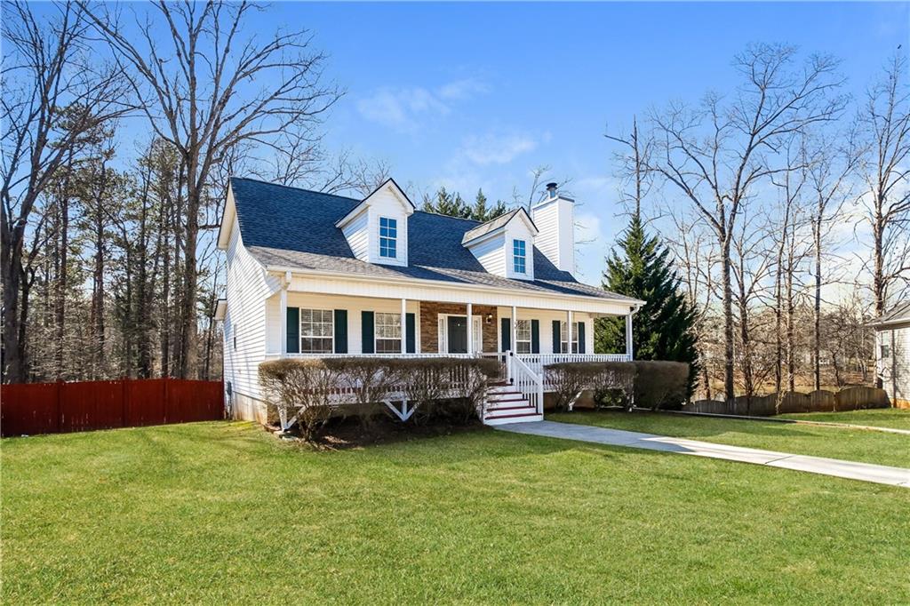 This well-maintained Cape Cod-style home features 3 bedrooms, 2.5 bathrooms, and over 1,800 sq ft of living space. The primary suite is located on the main level, while two additional bedrooms are upstairs, offering a flexible layout ideal for families or roommates. The light-filled living room boasts a two-story ceiling and a cozy fireplace, with luxury vinyl plank flooring throughout. The kitchen is fully equipped with stainless steel appliances including a refrigerator, range/oven, microwave, and dishwasher. Enjoy peaceful mornings on the welcoming front porch or entertain guests on the elevated rear deck. Located in a quiet swim-tennis community near shopping, dining, and just minutes to I-20. Zoned for South Paulding schools and pet-friendly (restrictions may apply). Don’t miss this move-in ready gem!