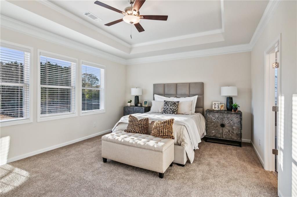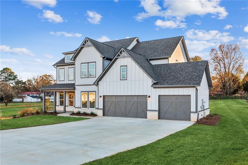 Built by EMC Homes GA, Move-in Ready October 2025 *** Seller to pay $20,000 ANY WAY YOU WANT IT with preferred lender.***The Carden Plan 5 beds/4 baths. 3rd Car Garage, Covered Front Porch, Foyer entrance, Kitchen & Breakfast Room Open to Family room with gas fireplace, Granite kitchen- island, White painted cabinets, stainless steel appliances/tile back-splash. Separate Dining Room, Main level has Office and flex space. Two piece crown molding on main level family room & Owners suite, 5"hardwoods in Foyer, kitchen/breakfast and dining room. Tile flooring in bathrooms. Owners Suite w/trey ceiling, separate tub and shower, double vanities. Ask Agent for details. The Porches at Mobley Lake is an exciting new home development in the city of Dacula. Residents will enjoy water views and an amenity package that includes a swimming pool with arbor, a playground and walking trails.