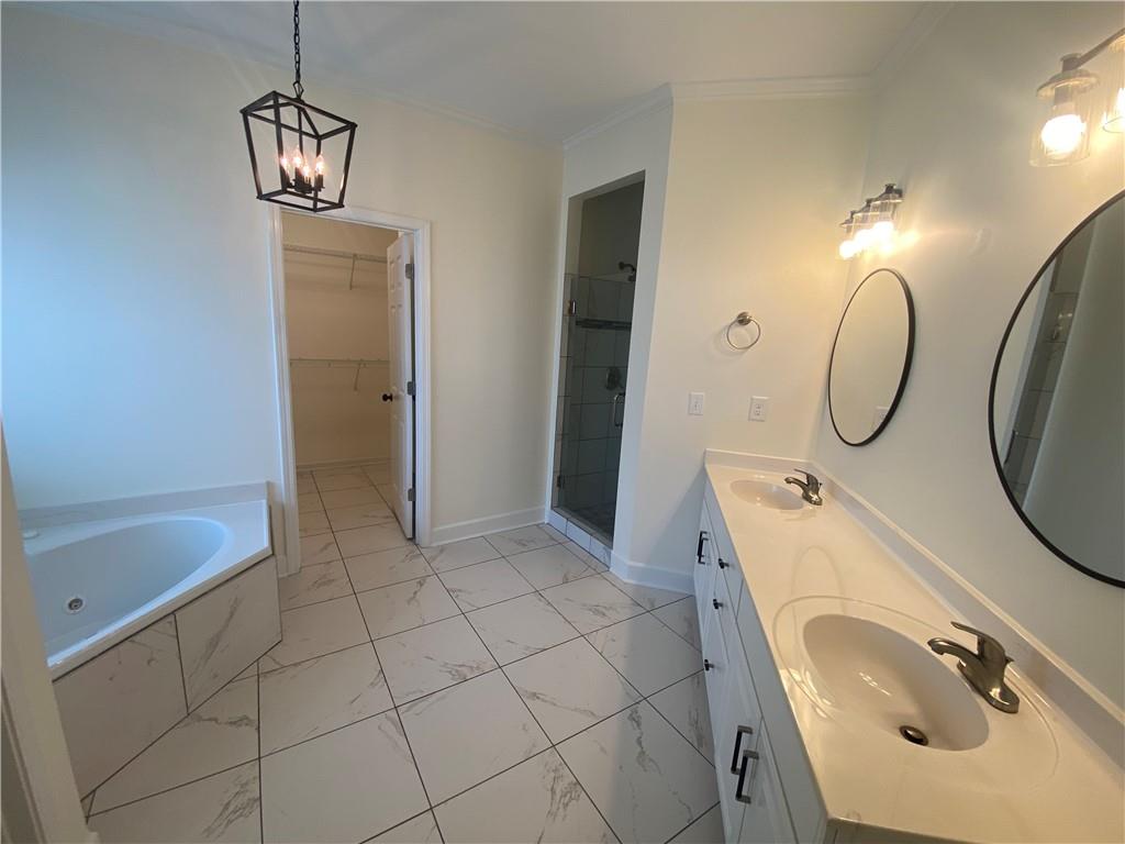 This beautifully maintained 4-bedroom, 3.5-bath all-brick ranch home with a private office offers the perfect blend of comfort, style, and location—just under a mile from the shops and restaurants of Historic Canton Street. Nestled in the highly sought-after Roswell Place subdivision, residents enjoy access to community amenities including a pool, tennis courts, scenic walking trails, and private entry to Heart of Roswell Park. Inside, the home features LVP flooring throughout the main level, crown molding, and a spacious open-concept layout ideal for everyday living and entertaining. The bright and inviting living room includes a cozy fireplace, while the private office with glass French doors is perfect for remote work. The updated kitchen is a standout with granite countertops, tile backsplash, stainless steel appliances, a breakfast bar, and modern fixtures—all flowing seamlessly into the dining area that overlooks the serene backyard. The main-level primary suite offers a luxurious retreat with a jetted tub, dual vanities, a tile walk-in shower, and a large walk-in closet. A barn door leads to two additional main-floor bedrooms that share a full hall bathroom. Upstairs, a generously sized bonus room/4th bedroom includes a closet and full bath—ideal for guests, teens, or multi-generational living. Enjoy relaxing or entertaining on the covered back porch and private patio surrounded by a beautifully landscaped backyard. This home is truly move-in ready and perfectly positioned to enjoy all that Roswell has to offer. Locally and professionally managed by All County Property Management North Metro, offering a streamlined leasing process. There will be a minimum 14 day period from approval to lease start. Pets allowed: up to two small dogs or one large dog (maximum 50 lbs). Minimum 1-year lease required.
