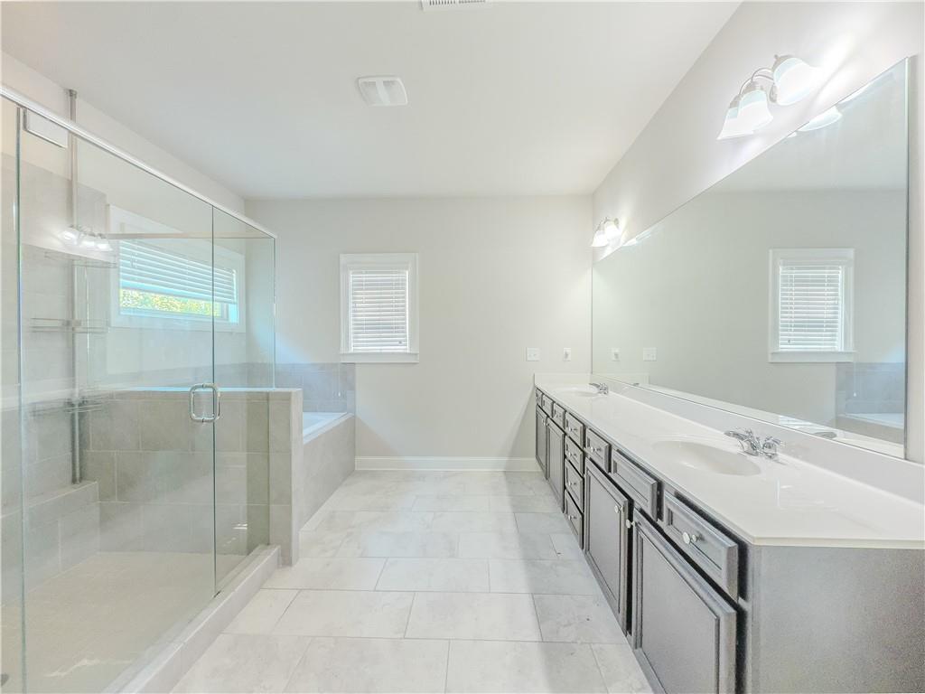 Awesome looking Brick Front home w. Double Bay Turrets & Large Covered Rear Back Patio in sought after Mill Creek School district! Reynolds plan has 6 bedrooms & 4 Full Baths! Guest bedroom & full bath downstairs. Master Bath has Tile Shower and Tiled Drop-in Tub! Hardwood floors 1st floor main areas! Gourmet Kitchen w. Espresso cabinets / stainless steel appliances w. double ovens & side-by-side refrigerator. Olympic sized swimming pool & clubhouse. Only 1 mile from Interstate I-85. GOOD RENTAL HISTORY- 2 RENTAL REFERENCES-AND CREDIT CHECK IS REQUIRED