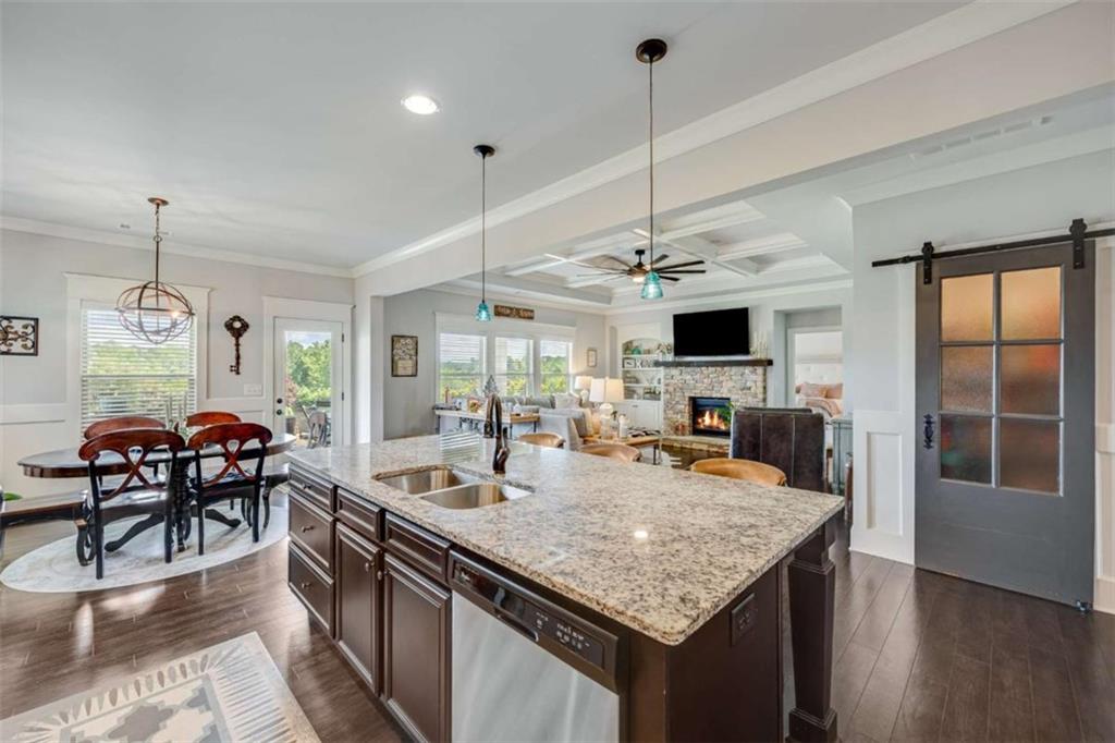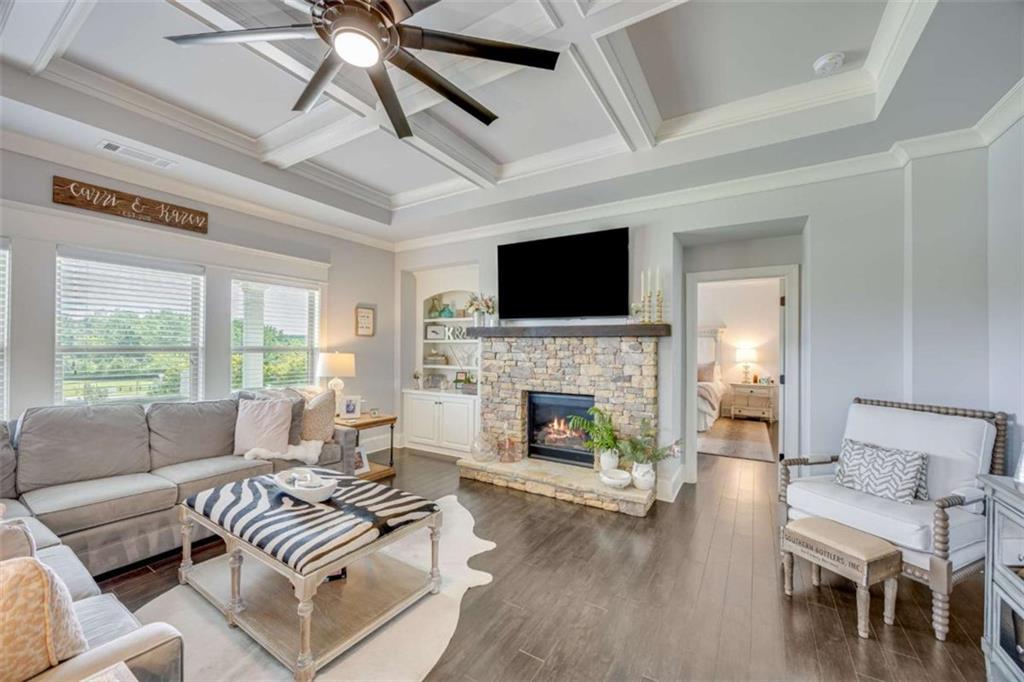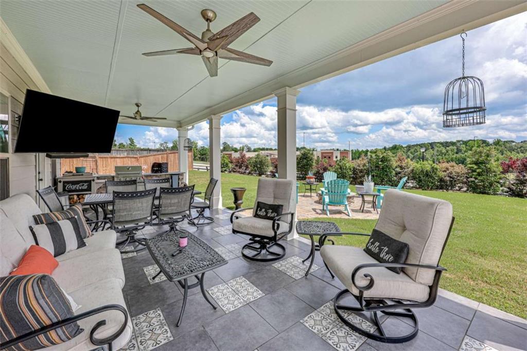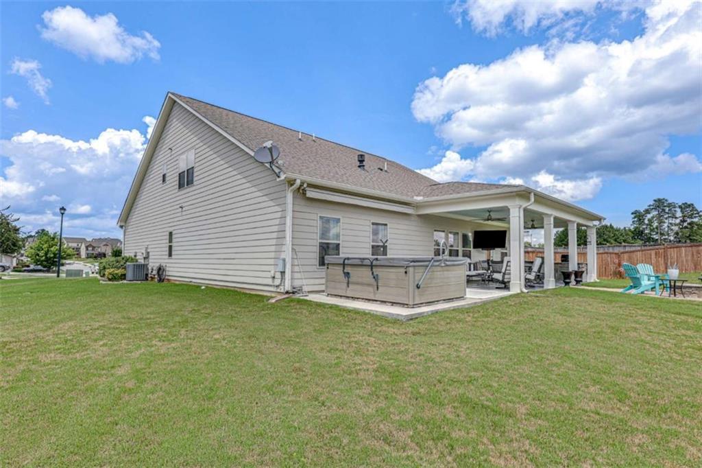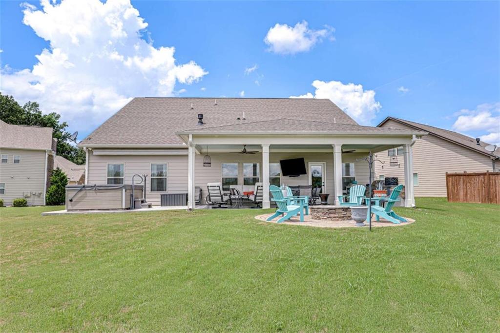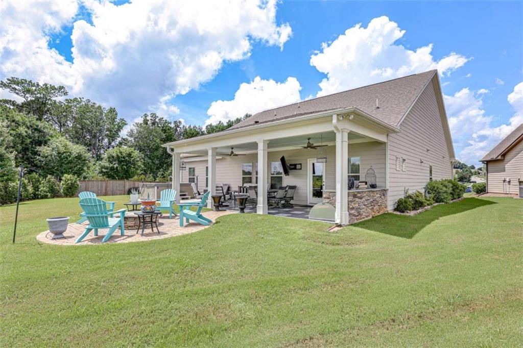 This thoughtfully designed ranch home offers luxury, function, and comfort-all in one beautiful package. The expansive owner's suite is a true retreat, featuring a $50,000 custom spa-inspired bathroom with a luxury shower, double vanities, and a huge walk-in closet with direct access to the laundry room for added convenience. The main level also includes two additional bedrooms, 1.5 baths, a private office with antique barn door, and an upgraded walk-in pantry chosen specifically during construction and tall 9 foot ceilings. The heart of the home features an open-concept living room with gas log fireplace and coffered ceiling, and a gourmet kitchen with upgraded cabinetry and finishes and a huge island and a dining space with views to the back yard. Enjoy multiple outdoor living spaces including a deep, covered front porch, a covered rear patio with built-in outdoor kitchen, and a gas-fed firepit-plus the perfect setup for a hot tub (you'll see the current 8-person model in place). Upstairs, you'll find a private guest suite with its own bedroom and full bath-ideal for multi-generational living or visitors. This home blends upscale finishes with smart, livable design-and it's ready for you.