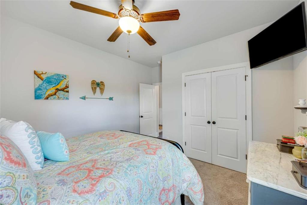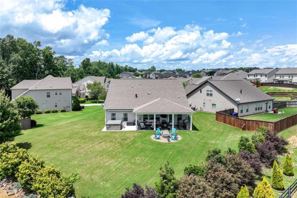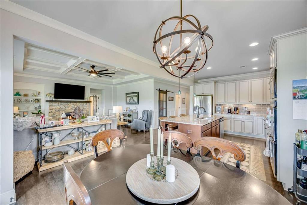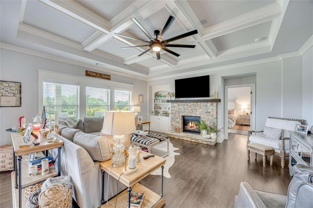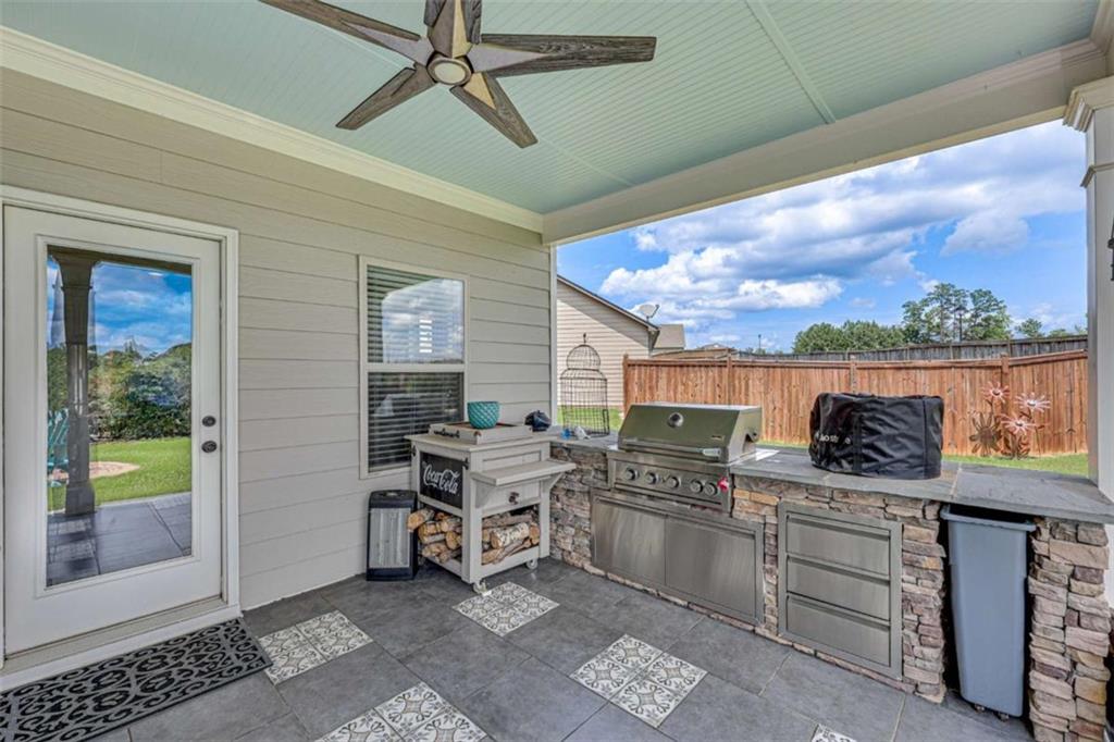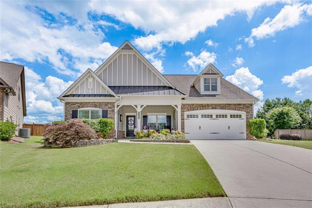 This thoughtfully designed ranch home offers luxury, function, and comfort-all in one beautiful package. The expansive owner's suite is a true retreat, featuring a $50,000 custom spa-inspired bathroom with a luxury shower, double vanities, and a huge walk-in closet with direct access to the laundry room for added convenience. The main level also includes two additional bedrooms, 1.5 baths, a private office with antique barn door, and an upgraded walk-in pantry chosen specifically during construction and tall 9 foot ceilings. The heart of the home features an open-concept living room with gas log fireplace and coffered ceiling, and a gourmet kitchen with upgraded cabinetry and finishes and a huge island and a dining space with views to the back yard. Enjoy multiple outdoor living spaces including a deep, covered front porch, a covered rear patio with built-in outdoor kitchen, and a gas-fed firepit-plus the perfect setup for a hot tub (you'll see the current 8-person model in place). Upstairs, you'll find a private guest suite with its own bedroom and full bath-ideal for multi-generational living or visitors. This home blends upscale finishes with smart, livable design-and it's ready for you.