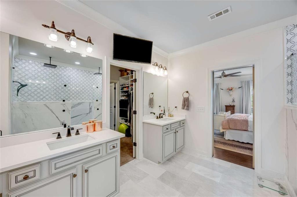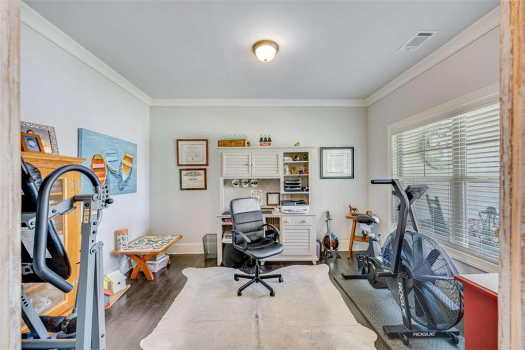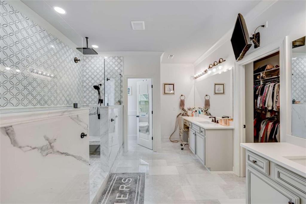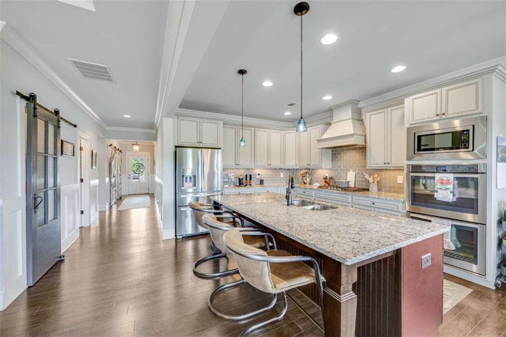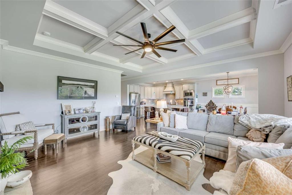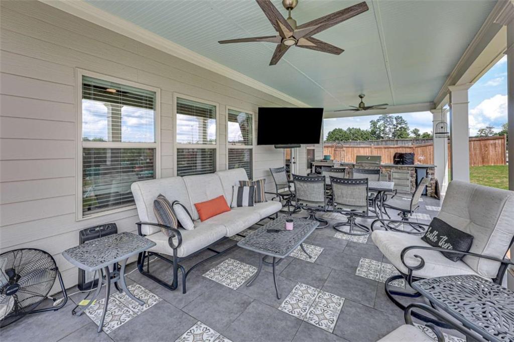 This thoughtfully designed ranch home offers luxury, function, and comfort-all in one beautiful package. The expansive owner's suite is a true retreat, featuring a $50,000 custom spa-inspired bathroom with a luxury shower, double vanities, and a huge walk-in closet with direct access to the laundry room for added convenience. The main level also includes two additional bedrooms, 1.5 baths, a private office with antique barn door, and an upgraded walk-in pantry chosen specifically during construction and tall 9 foot ceilings. The heart of the home features an open-concept living room with gas log fireplace and coffered ceiling, and a gourmet kitchen with upgraded cabinetry and finishes and a huge island and a dining space with views to the back yard. Enjoy multiple outdoor living spaces including a deep, covered front porch, a covered rear patio with built-in outdoor kitchen, and a gas-fed firepit-plus the perfect setup for a hot tub (you'll see the current 8-person model in place). Upstairs, you'll find a private guest suite with its own bedroom and full bath-ideal for multi-generational living or visitors. This home blends upscale finishes with smart, livable design-and it's ready for you.
