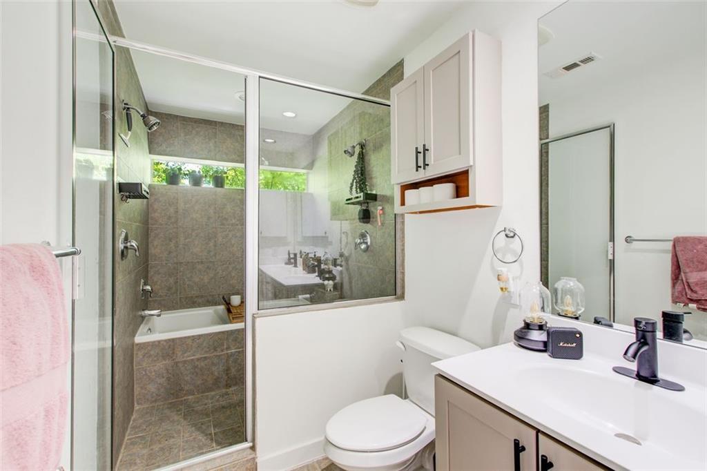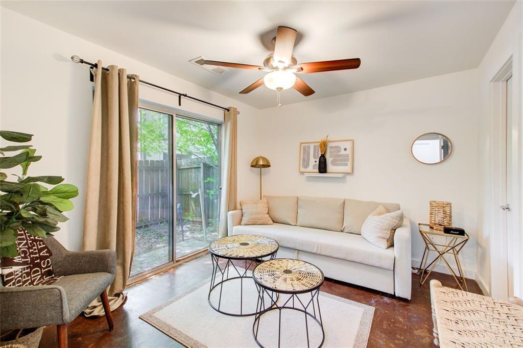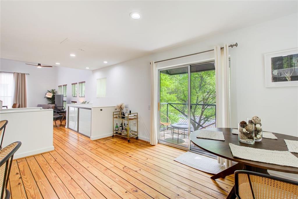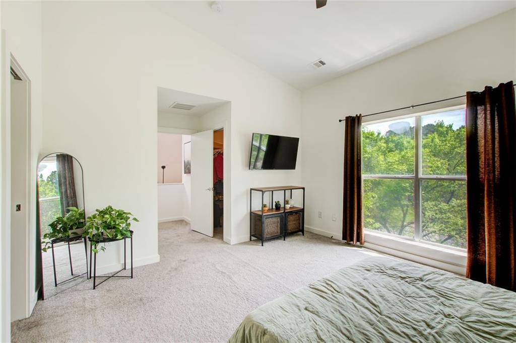 Welcome to this stunning three-story townhome, a bright and spacious end unit nestled in the heart of Atlanta’s vibrant Eastside. Perfectly positioned between Kirkwood and East Atlanta Village, this home blends industrial charm with modern comfort, all within walking distance to Pullman Yards, the BeltLine, Oakhurst, and Downtown Decatur. Spanning over 1,800 square feet, this home offers generous living space across three thoughtfully designed levels. Step inside and be greeted by soaring ceilings over seventeen feet high and breathtaking floor-to-ceiling windows that fill the space with natural light. The main level features rich hardwood floors and an open-concept living area that flows effortlessly into the kitchen, complete with granite countertops, generous cabinetry, and a breakfast bar perfect for casual meals or entertaining. Just off the living area, a private deck awaits for morning coffee or evening grilling. The entire top floor is a serene primary suite retreat, offering plush carpeting, vaulted ceilings, a cozy sitting or office nook, a walk-in closet, and a spa-inspired bathroom with double vanities, a soaking tub, and a separate shower. On the terrace level, polished concrete floors add stylish character to a second bedroom and full bath, with direct access to a beautifully fenced backyard a private patio, ideal for pets, entertaining, or simply unwinding under the stars. A true two-car garage adds both convenience and extra storage. This thoughtfully designed home also boasts a roommate-friendly layout, multiple outdoor living spaces, and no rental restrictions, making it a wonderful choice for homeowners and investors alike. With quick access to I-20, MARTA, and Atlanta’s best dining, shopping, and green spaces, this townhome offers the perfect mix of location, lifestyle, and charm. Come see what makes this Eastside gem so special