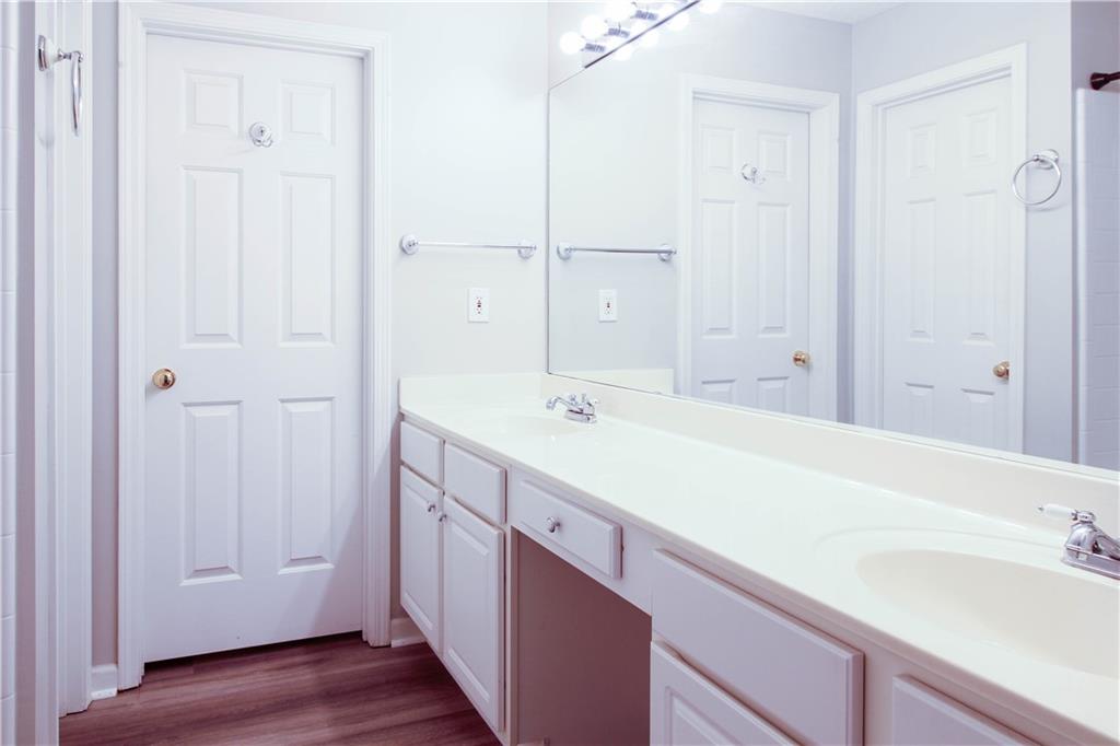 NEW beautiful large format tiles in kitchen. Three bedroom single family house in the heart of Duluth. The home has refinished hardwood floors and Luxury Vinyl flooring throughout. The first floor consists of a spacious living room with an open kitchen with breakfast bar. The second floor consists of the 2 bedrooms and the vaulted ceiling master bedroom. Laundry room is located right in the second floor hallway for convenience. Huge, fenced private backyard. Lawn Maintenance included!!! Walk to H-Mart and Great Wall Supermarket, minutes to I-85 and Gwinnett Place. The home is situated in a well managed swim/tennis community.