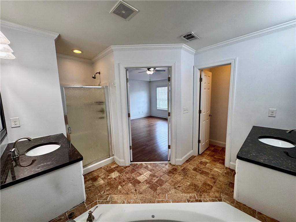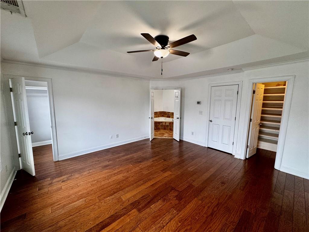 Rare 4BR/3.5BA End-Unit Townhome with Exclusive Features in Prime Peachtree Ridge District. Welcome to this exceptional end-unit townhome, a rare gem in the highly sought-after Ewell Parc community, located in the top-rated Peachtree Ridge High School district. With 4 spacious bedrooms and 3.5 bathrooms across three finished levels. The only unit in the community with two additional parking spaces, perfect for guests or multi-car households. Enjoy the added space of a larger private backyard with its premium end-cap location. Step inside to find a bright, open-concept main floor featuring hardwood floors, a spacious living room with an electric fireplace, and a modern kitchen complete with tile countertops, stainless steel appliances, cabinetry, and a Walk-in pantry. Upstairs, the oversized primary suite has dual closets and a master bath with His & Her vanities, a soaking tub, and a separate shower. Two other upstairs bedrooms share a full bathroom, providing perfect space for other family members. The fully finished terrace level offers an additional private bedroom and full bath, ideal for an in-law suite, teen retreat, or home office. Convenient access to Sugarloaf Mills, I-85, and Hwy 316, just minutes from shopping, dining, and entertainment.