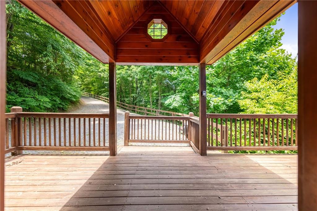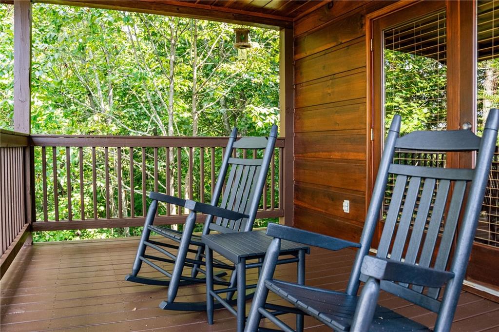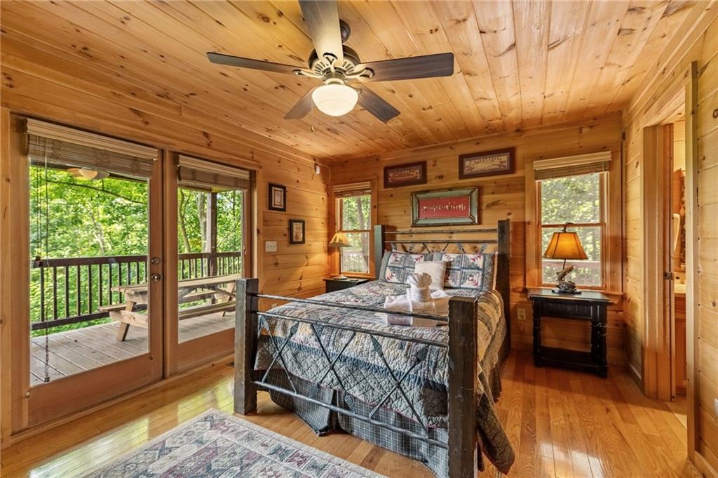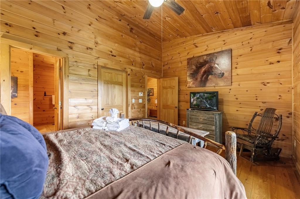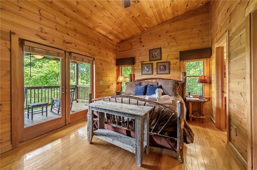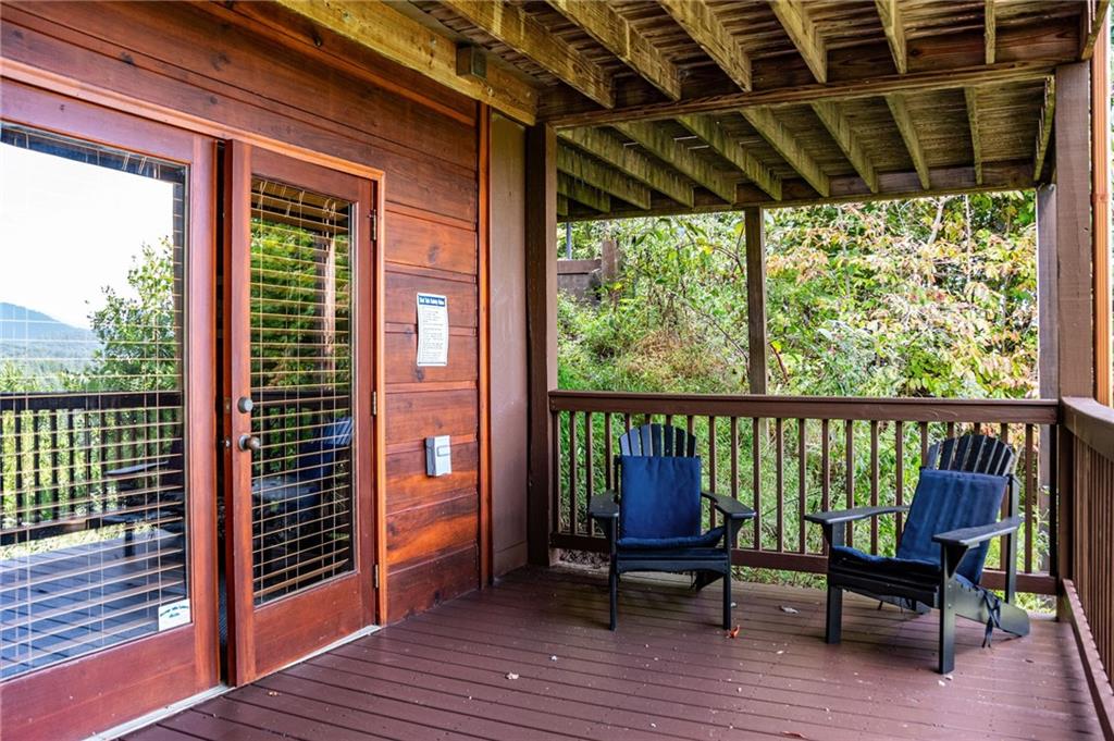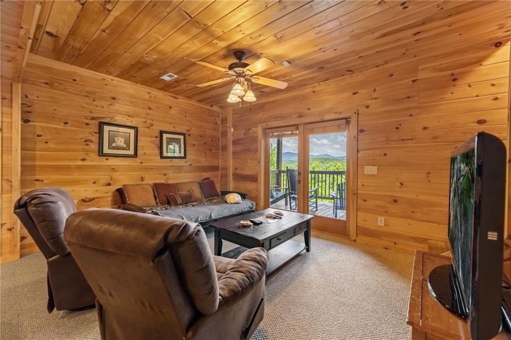 If you have "High Expectations", then this is the mountain getaway for you! You will be wowed by the magnificent long-range and close mountain views from multiple spots throughout. Featuring three levels with a bedroom and bath on each, along with loft living space and basement den/game room, this is the perfect layout for everyone to have their own space yet still be together. The spacious great room has a floor to ceiling custom stone, wood-burning fireplace, dining area, and kitchen with island seating and plenty of room for making culinary creations. The upstairs bedroom has its own private deck plus a soaking tub in the en suite bath. The lower floor features more lounging space perfect for movie watching, a pool table, foosball, and deck with hot tub to enjoy the magical views while you relax. Enjoy the babble of a small brook that runs along one side of the property. Finished with cozy wood throughout, rustic furnishings, and sold turn-key, you are ready for your private getaway or for use as an income-generating vacation rental. Located in the prestigious Mountain High subdivision with paved roads and underground utilities, you are in the middle of hiking, shopping, sightseeing, and more plus an easy drive to bustling Downtown Blue Ridge or Murphy, NC! Come see the home that will meet your "High Expectations" today!