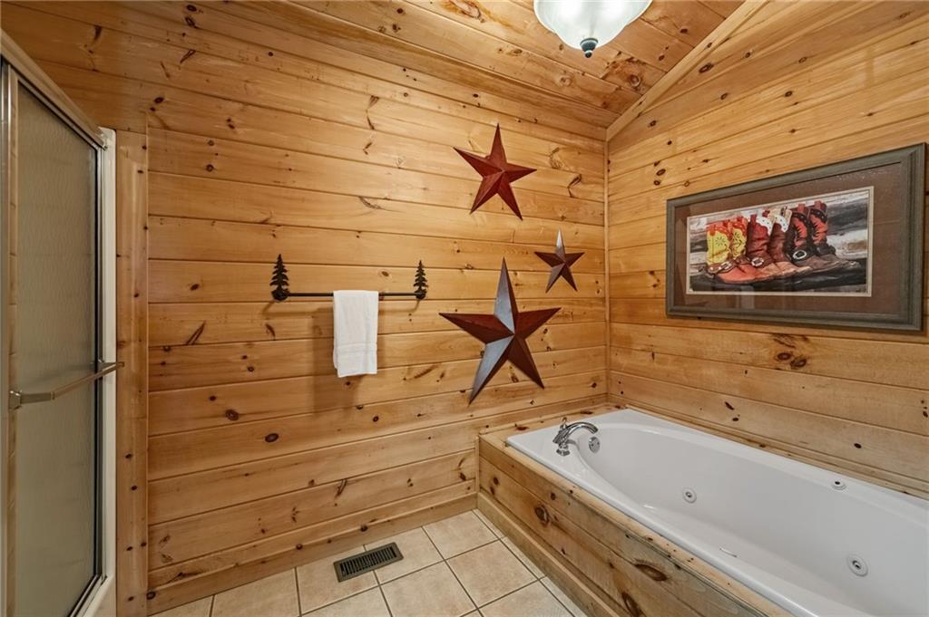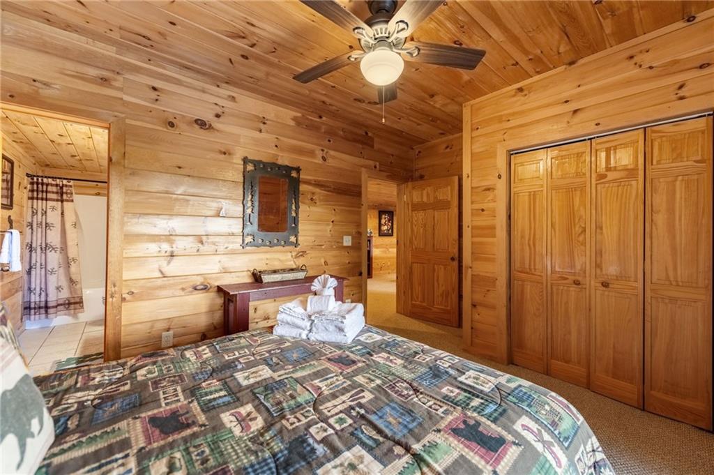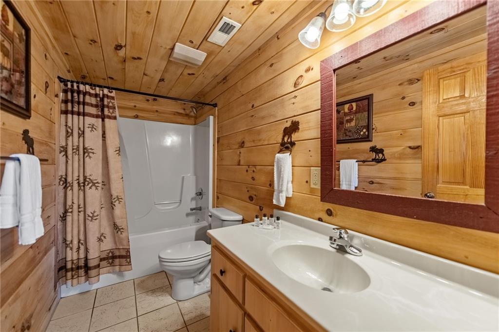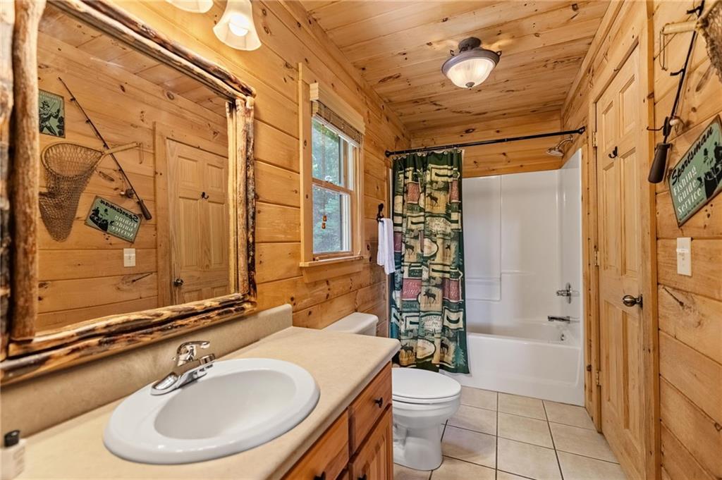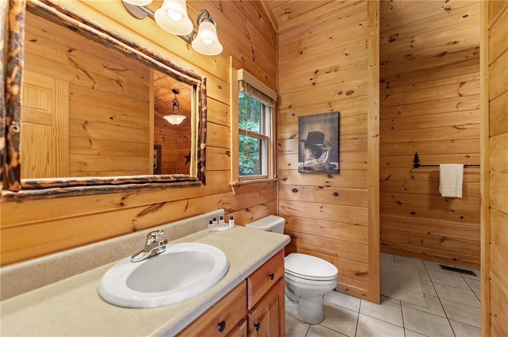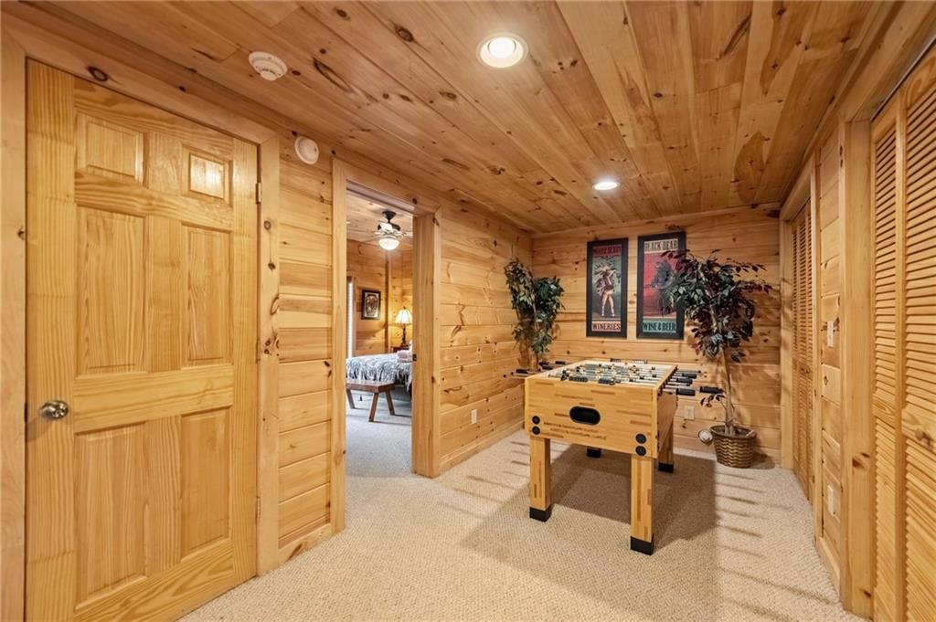 If you have "High Expectations", then this is the mountain getaway for you! You will be wowed by the magnificent long-range and close mountain views from multiple spots throughout. Featuring three levels with a bedroom and bath on each, along with loft living space and basement den/game room, this is the perfect layout for everyone to have their own space yet still be together. The spacious great room has a floor to ceiling custom stone, wood-burning fireplace, dining area, and kitchen with island seating and plenty of room for making culinary creations. The upstairs bedroom has its own private deck plus a soaking tub in the en suite bath. The lower floor features more lounging space perfect for movie watching, a pool table, foosball, and deck with hot tub to enjoy the magical views while you relax. Enjoy the babble of a small brook that runs along one side of the property. Finished with cozy wood throughout, rustic furnishings, and sold turn-key, you are ready for your private getaway or for use as an income-generating vacation rental. Located in the prestigious Mountain High subdivision with paved roads and underground utilities, you are in the middle of hiking, shopping, sightseeing, and more plus an easy drive to bustling Downtown Blue Ridge or Murphy, NC! Come see the home that will meet your "High Expectations" today!