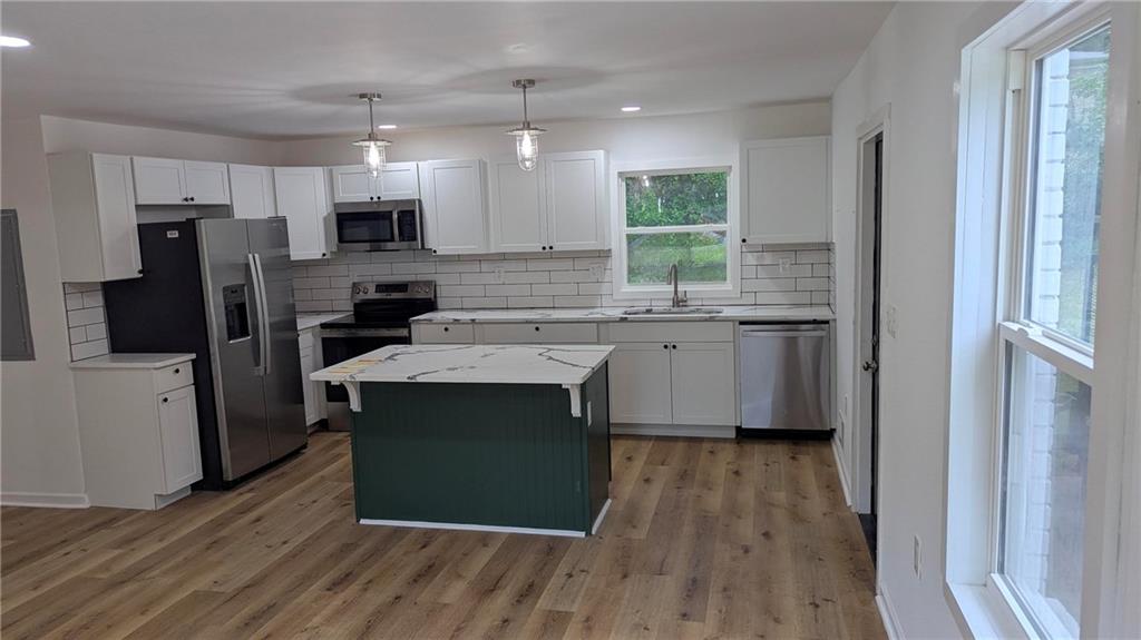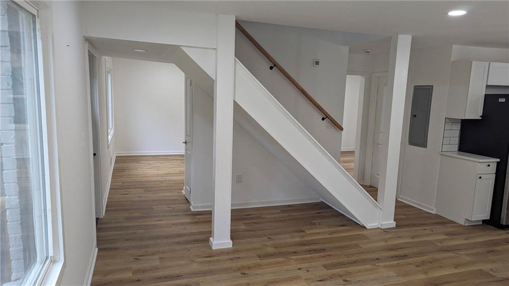 Large brick contemporary style home with spacious great room! Includes updated kitchen and renovated bathrooms with tile showers. Enjoy the large deck that overlooks the relaxing back yard. This charming single-family home is nestled in a vibrant and welcoming neighborhood with easy access to shops, restaurants, the airport, and major highways for convenient commuting. Experience the perfect blend of style, comfort, and East Atlanta location! Schedule a viewing today and make this gem your own!