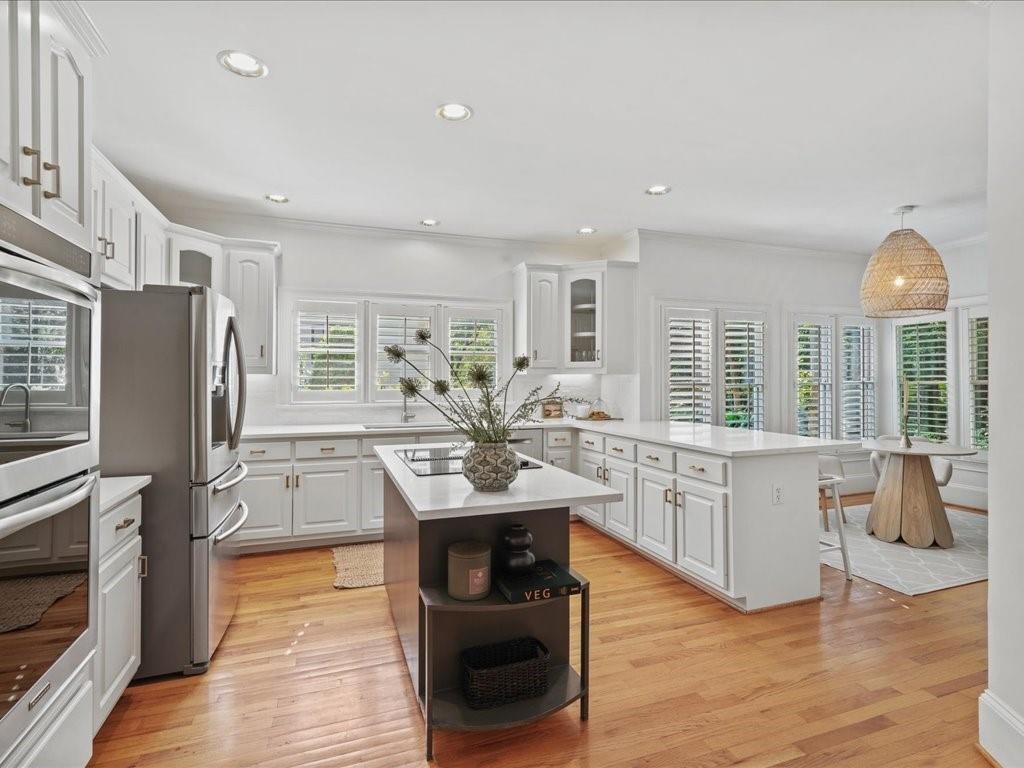 Looking for the one that checks every single box? This is it: a beautifully renovated retreat sitting on 1.5 acres of rare Chattahoochee riverfront. Tucked away in one of Peachtree Corners’ most sought-after spots, you’ll get privacy, convenience, and that perfect master-on-main floor plan all in one. Step inside and you’re instantly greeted with light pouring in, open living spaces, and hardwood floors that span the main level. The kitchen is updated with quartz counters, subway tile backsplash, and stainless steel appliances, opening into a breakfast nook and a vaulted keeping room with beams and a stone fireplace made for cozy nights. Even the laundry room is a stunner with custom finishes. The primary suite is what “retreat” really means: a custom walk-in closet, spa-like bath with marble double vanities, soaking tub, and glass shower. Upstairs, you’ll find three more bedrooms that can be used for guests, an office, or a playroom, along with a decorator-style bath. The terrace level offers a media room, wet bar, gym, another bedroom, full bath, and plenty of storage. It is perfect for entertaining, hosting, or multi-generational living. Outside, it only gets better. A large deck overlooks your private wooded sanctuary along the river, and the backyard offers raised garden beds for those with a green thumb. Morning coffee, weekend gatherings, or future pool parties (plans already drawn up) are waiting for you here. Practical upgrades make daily living even easier. The home includes a whole-house water filtration system for peace of mind. All of this is just minutes from The Forum, Town Center, Atlanta Athletic Club, and top-rated schools like Cornerstone and Wesleyan. Opportunities like this do not come around often. Luxury, location, and lifestyle collide here, so act fast before this riverfront gem is gone.