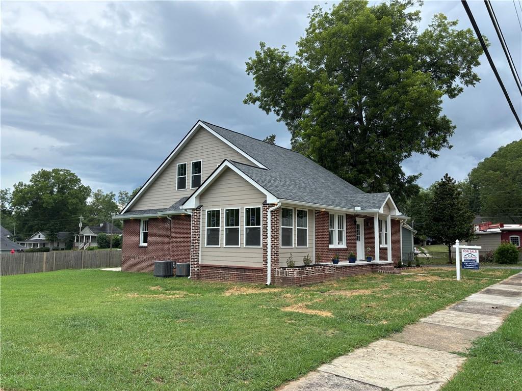 Charming Fully Restored Four-Sided Brick Home. This beautifully restored four-sided brick home seamlessly blends classic charm with modern updates. A recent addition includes a brand-new second floor, offering expanded living space and functionality. The home features 3 spacious bedrooms and 2.5 updated baths, including a serene master suite. The main level boasts a large, light-filled living room with gorgeous windows, a formal dining room, and a kitchen outfitted with custom cabinetry and granite countertops. A dedicated laundry room adds convenience and style. New 3/4" hardwood floors have been installed on the main level to give a timeless look. Step outside to enjoy a lovely back patio, perfect for entertaining, and a separate one-car garage. Everything has been thoughtfully updated--brand-new HVAC, wiring, plumbing ensures peace of mind for years to come. The home boasts of a dry and waterproof cellar, perfect for storage. This home is within the Cartersville City School district and walking distance to all downtown shops, restaurants and farmer's market. It is move-in ready and a true must see!