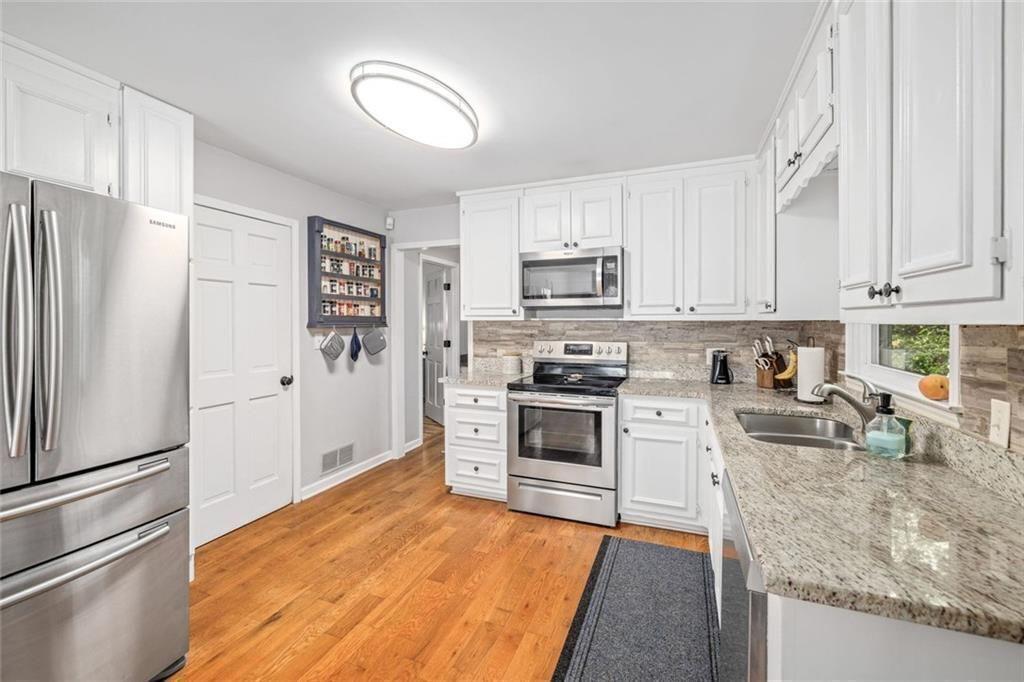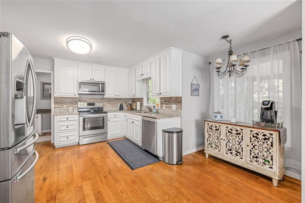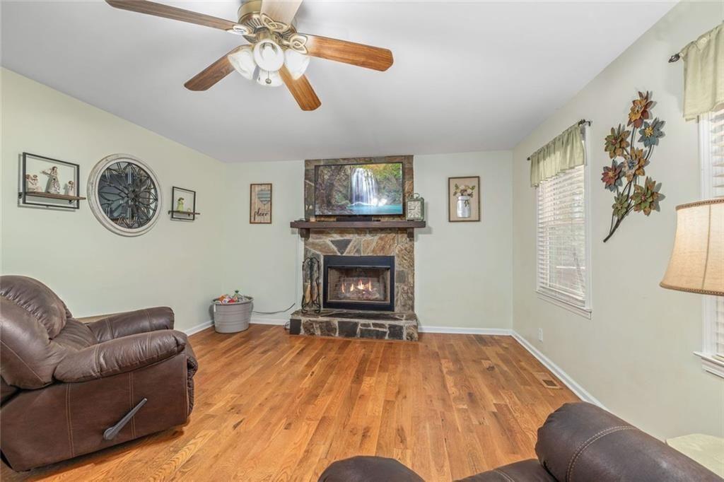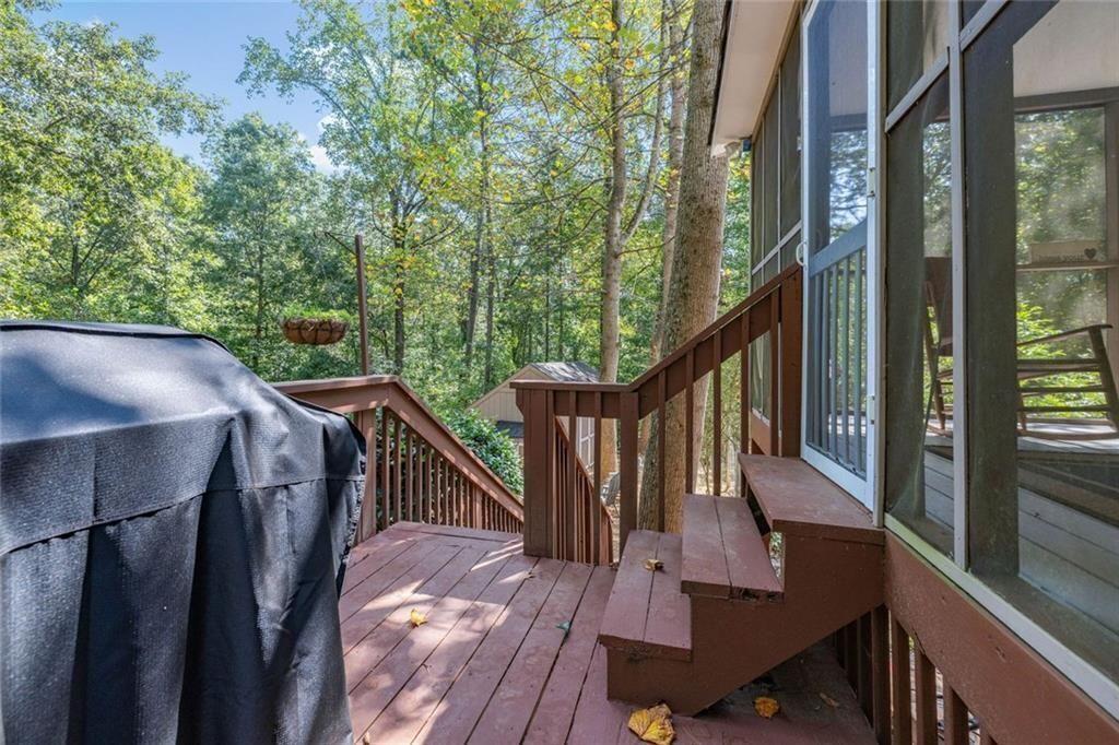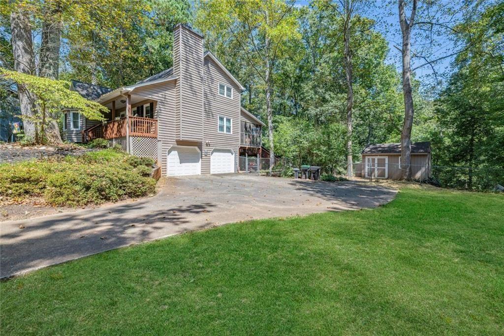 Looking for privacy? Welcome to 3415 Spinnaker Way. The long driveway leads up to this private 3 Bedroom 2 Bath home on 1.5 acres. The welcoming front porch is a peaceful place to enjoy your morning cup of coffee. Features included an oversized master on main with sitting room, a spacious kitchen with white cabinets and stone counter tops. Real wood burning fireplace makes for cozy winter nights. Upstairs has 2 large bedrooms, full bath & laundry. Screened in porch overlooks beautiful, wooded, fenced in backyard with a storage shed. The unfinished basement provides room for 2 cars or could be converted living space for the family, hobbies, or a workshop. Lots of possibilities. Parking room for your boat and camper. Awesome location if you love the lake! Easy access to both 75 & 575, close to Lake Allatoona, campgrounds, parks, great restaurants and tons of shopping.