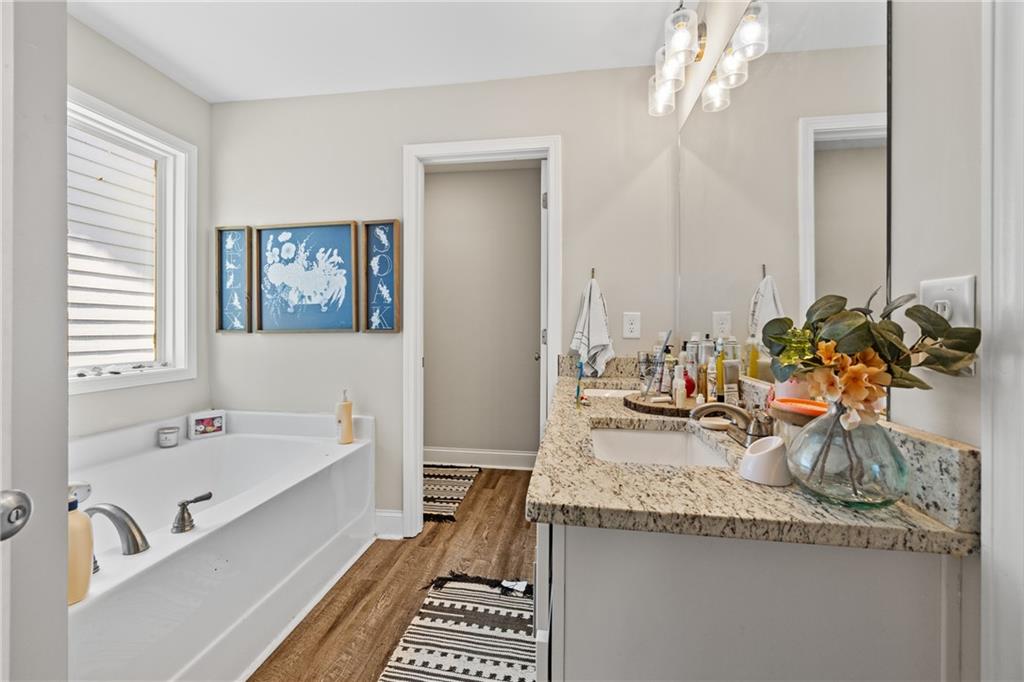 This 3 bedroom, 2.5 bath home in the Villas at Hood Park blends comfort, style, and convenience. The kitchen features an island, white shaker cabinets, granite countertops, and stainless-steel appliances, open to a bright living space ideal for entertaining. Upstairs you will find the primary suite, which offers a double vanity, separate tub and shower, and a walk-in closet. Two additional bedrooms share a full bath, with a half bath on the main level for guests. The fenced in backyard is perfect for pets, or for you and your family to relax. Located across from Hood Park with a stocked community lake and close to schools, shopping, dining, and I-515 for easy commuting.