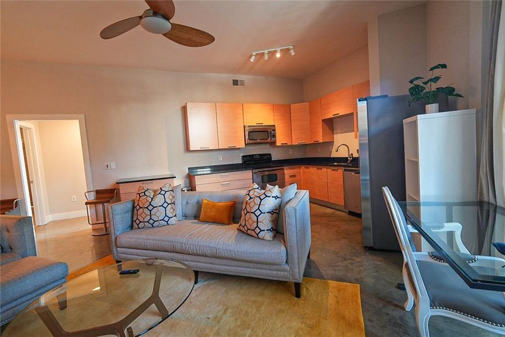 A vibrant and artistic urban neighborhood, perfect for city-savvy professionals and creatives Welcome to sophisticated urban living in the heart of Castleberry Hill! This 1-bedroom, 1-bathroom condominium spans approximately 930 sq ft and features an open-concept layout with 10-foot concrete ceilings, lending a modern, industrial flair. Key Features - 1 bedroom | 1 full bathroom - ~930 sq ft of airy, versatile space - Exposed concrete floors and high ceilings for loft-style appeal - In-unit washer and dryer for added convenience - Private covered balcony offering city views and entertaining space - Assigned gated parking included Community & Lifestyle - Located in Centennial Station, a gated building full of character and architectural intention - Enjoy easy access to MARTA, trendy eateries, hip galleries, and entertainment venues - Walking distance to landmarks like Mercedes-Benz Stadium, CNN Center, and Centennial Olympic Park, offering unmatched convenience for work, leisure, and nightlife Why You’ll Love It This unit blends industrial-chic design with modern comforts. With lofty ceilings, in-unit laundry, private outdoor space, it’s an exceptional value. Enjoy low-maintenance condo living steps away from Downtown Atlanta’s energy, culture, and transit. Schedule a showing today — this Castleberry Hill gem won’t stay on the market for long!