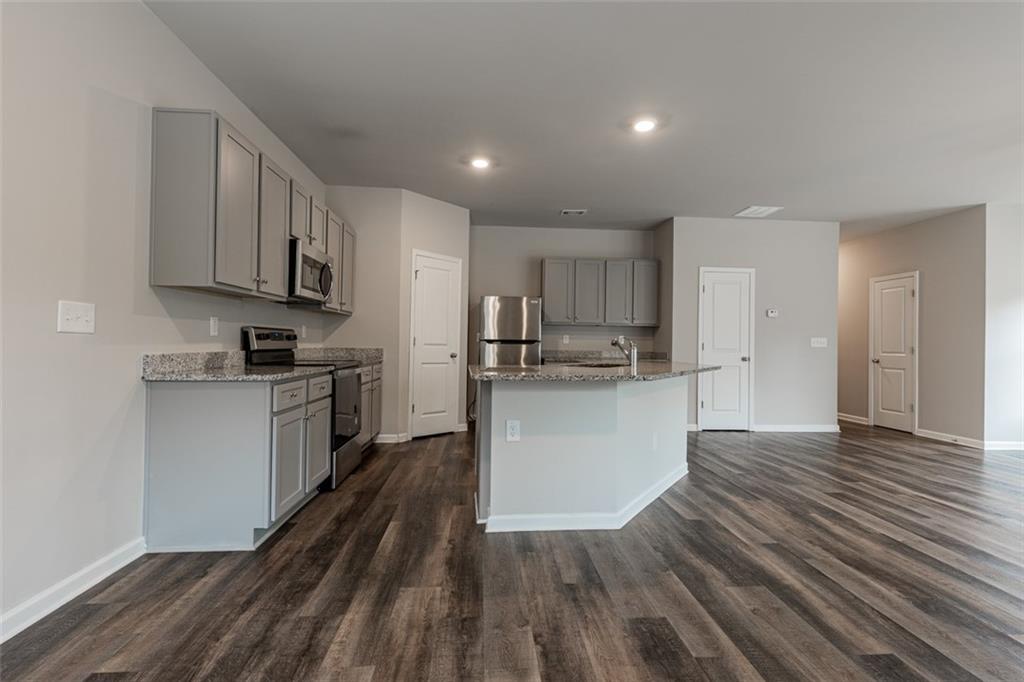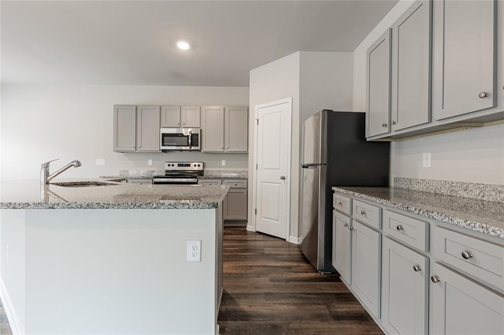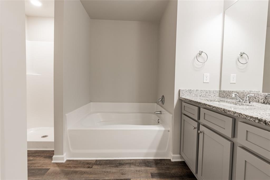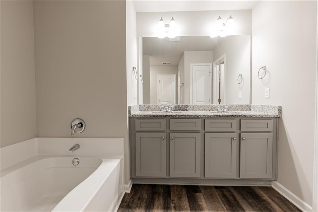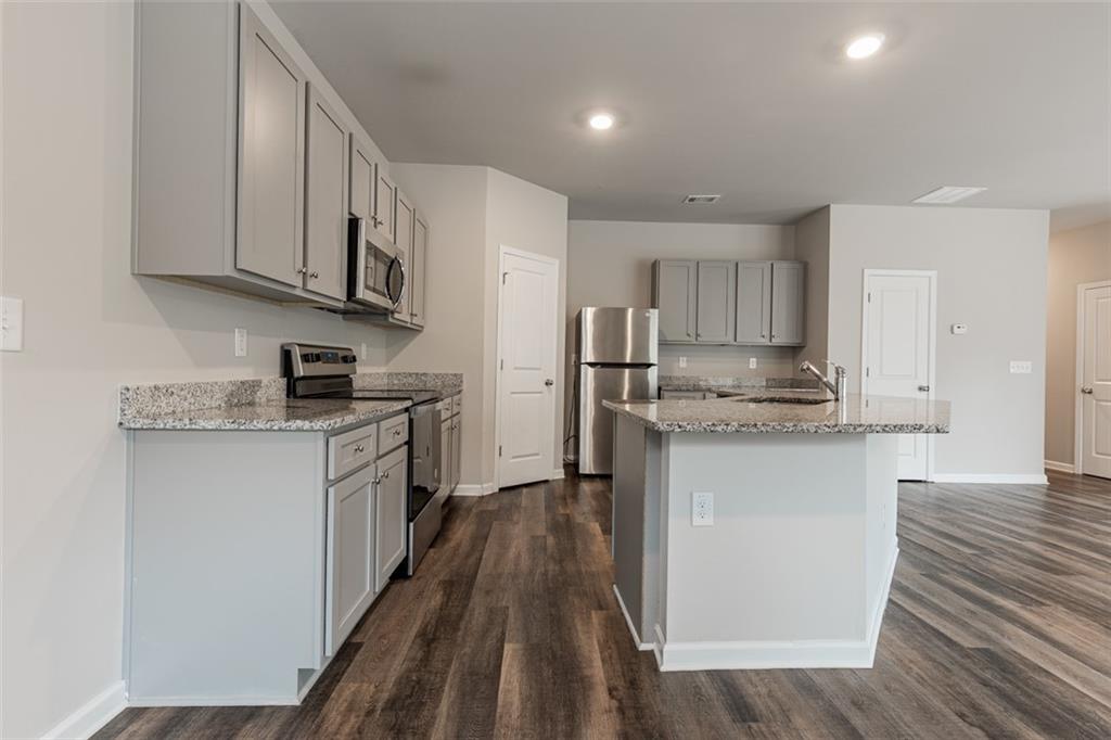 Spacious 4 bedroom/3.5 bath two- story home with private backyard. Practically brand new features open kitchen to family room w/ vaulted ceilings. Kitchen boasts plenty of cabinets with large island, stainless steel appliance package, granite countertops. Luxury LVP floors included in foyer, family room, kitchen and breakfast area. Master on main, master bath with separate tub & tile shower, granite countertops and tile flooring. All situated in a swim/tennis community!