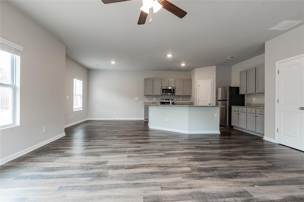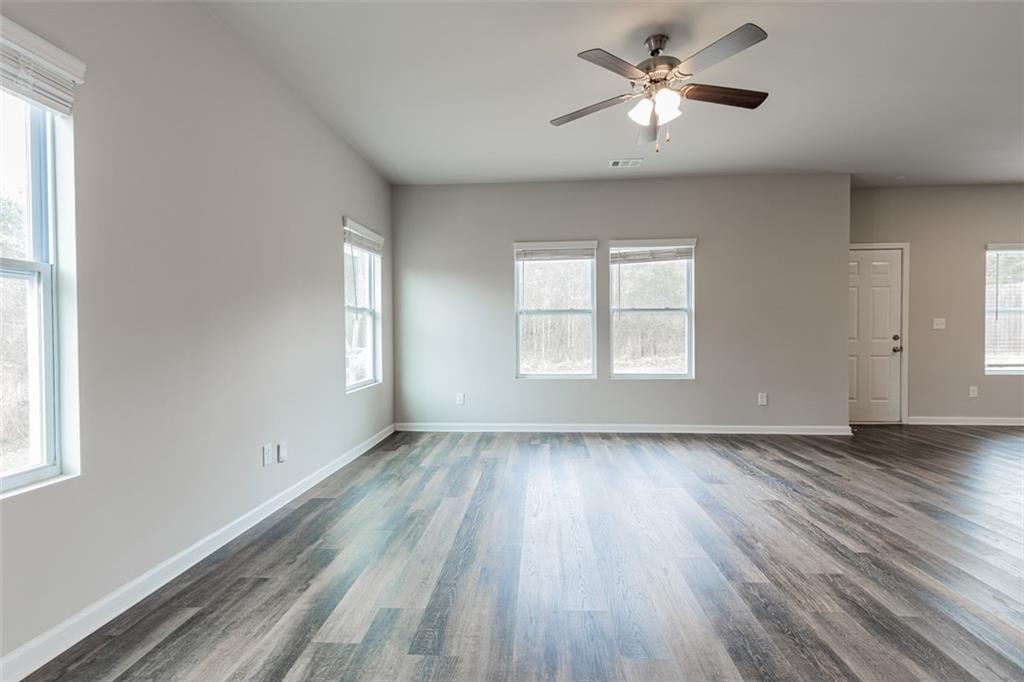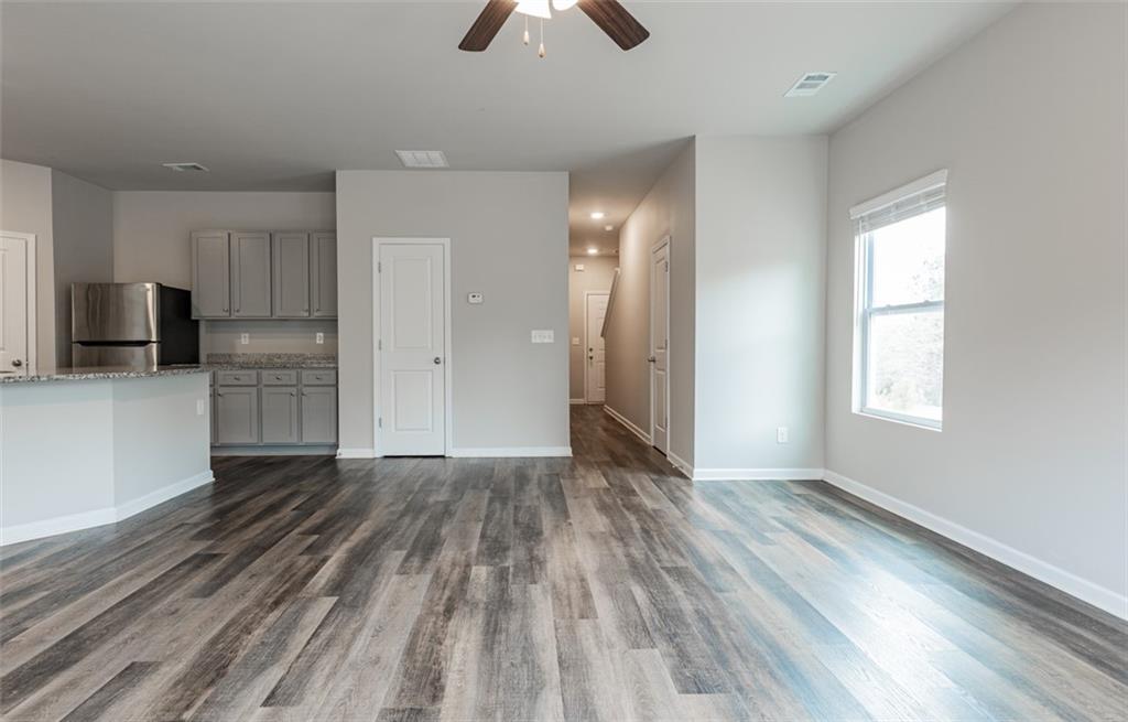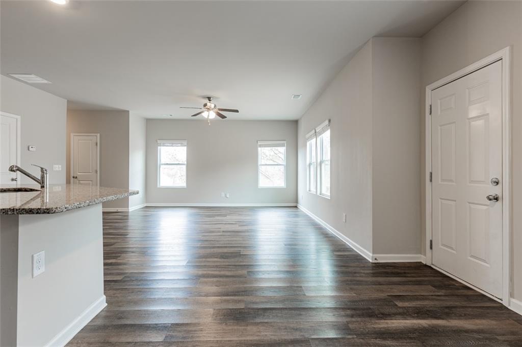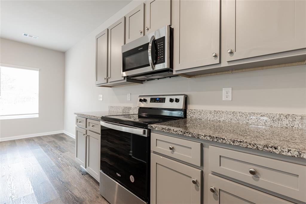 Spacious 4 bedroom/3.5 bath two- story home with private backyard. Practically brand new features open kitchen to family room w/ vaulted ceilings. Kitchen boasts plenty of cabinets with large island, stainless steel appliance package, granite countertops. Luxury LVP floors included in foyer, family room, kitchen and breakfast area. Master on main, master bath with separate tub & tile shower, granite countertops and tile flooring. All situated in a swim/tennis community!