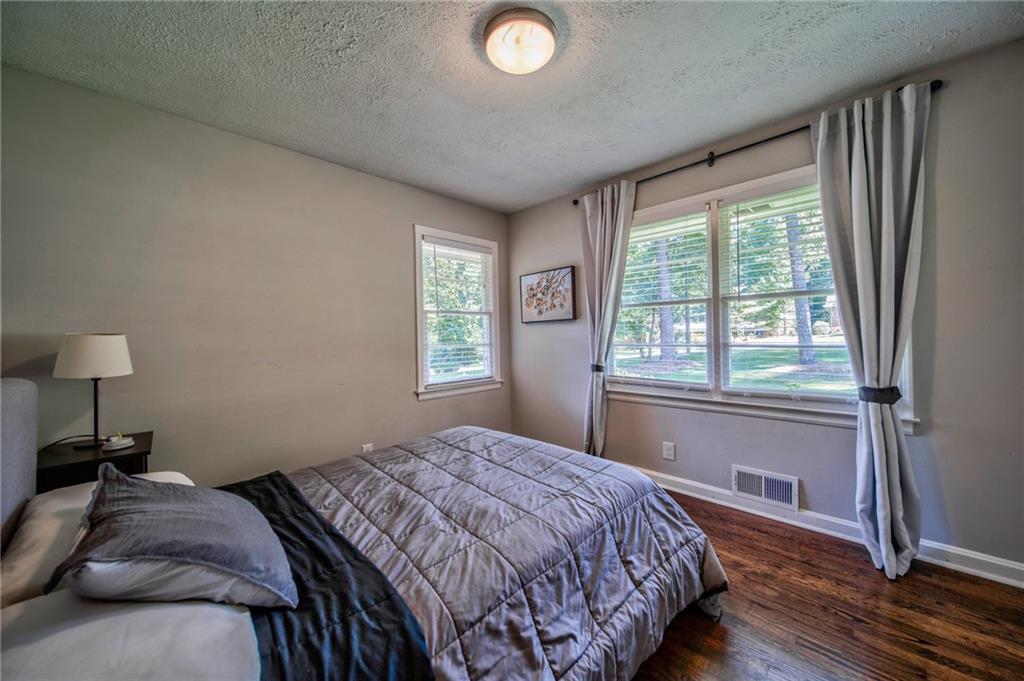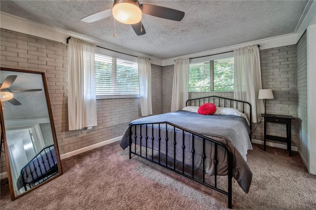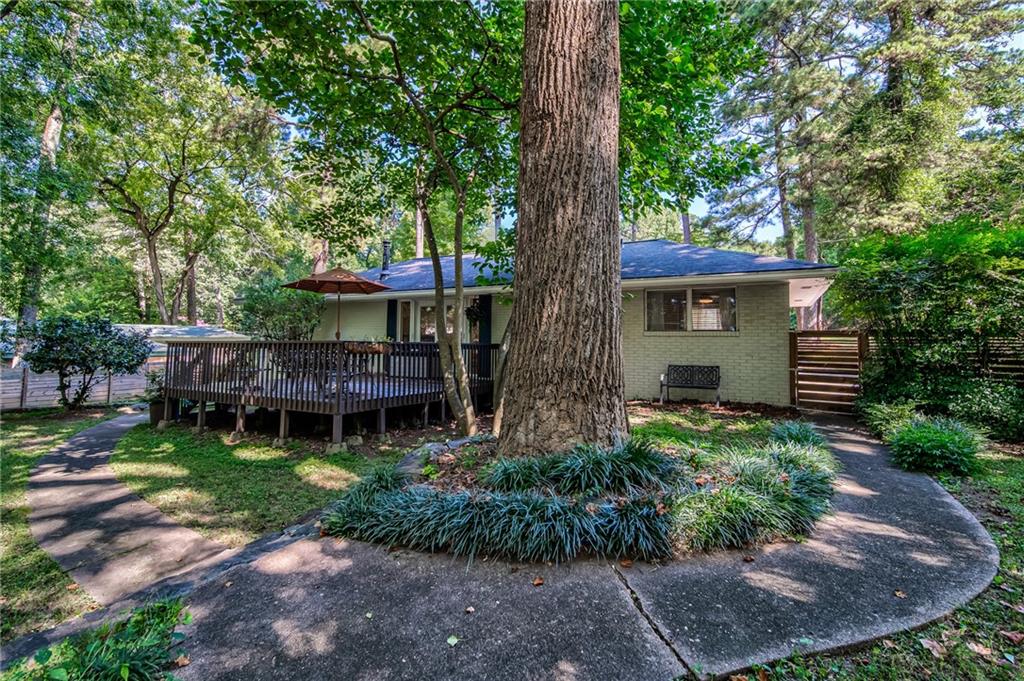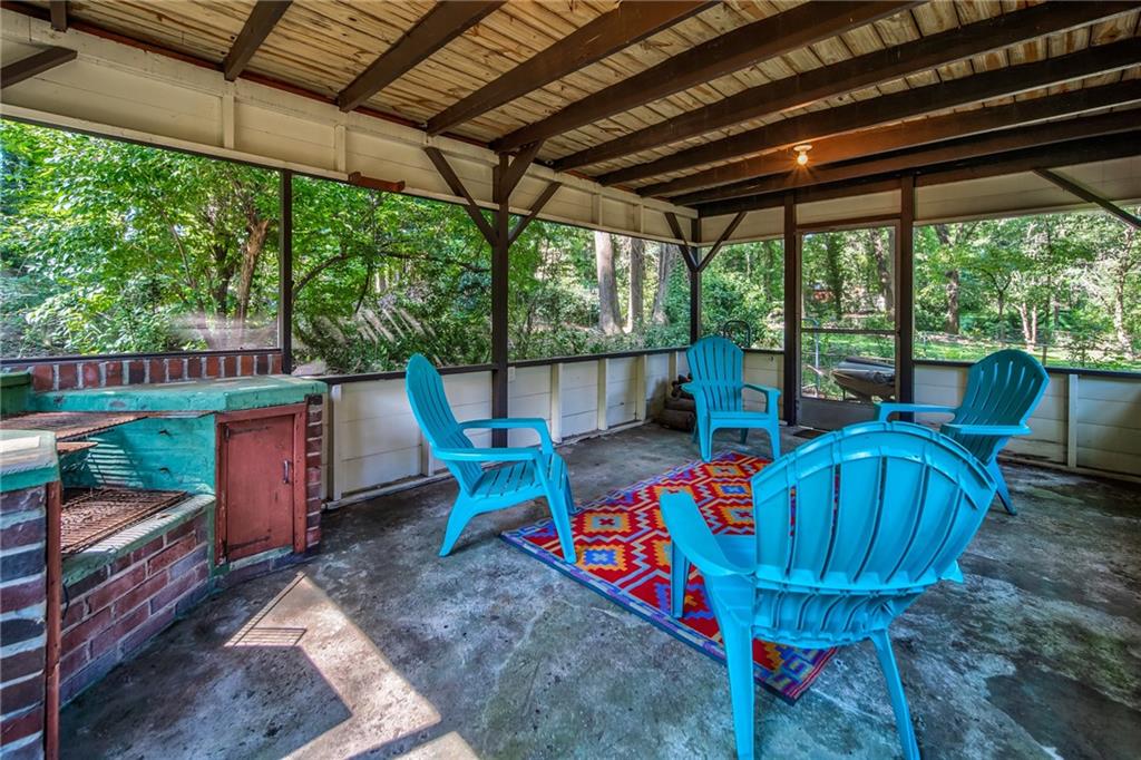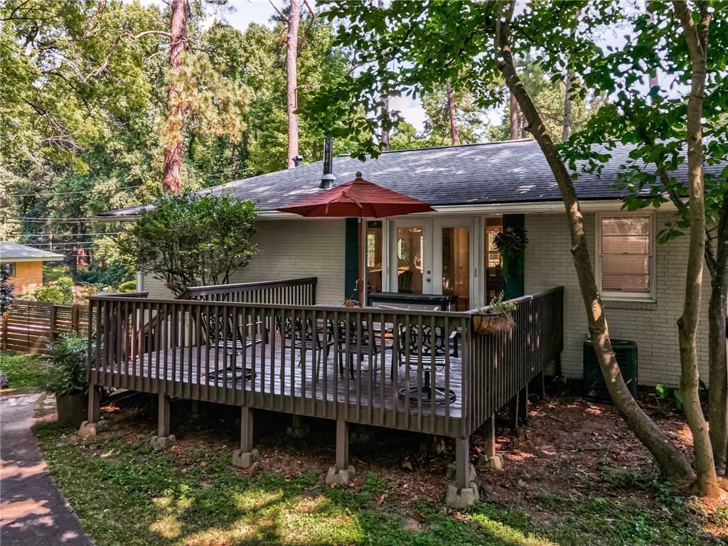 Fully renovated, four-sided brick mid-century ranch is situated on nearly ¾ of an acre with a fenced yard, located in a quiet, well-established cul-de-sac neighborhood. Thoughtfully updated in 2020, this 3-bedroom, 2-bath home combines timeless character with modern conveniences. The single-level design offers minimal steps and an open, inviting floor plan. The primary suite features an ensuite bathroom, custom built-in closets, and ample natural light. The updated eat-in kitchen includes granite countertops and custom shelving, flowing seamlessly into the family room, where a wood-burning stove with a stone hearth provides a cozy focal point. Designer fixtures with dimmable lighting and custom finishes enhance the home’s sophisticated appeal. French doors open to a spacious private deck and garden area, ideal for relaxation or entertaining. The backyard includes a large detached entertaining shed with a built-in brick BBQ, adding versatile outdoor living space. Additional highlights include a newer roof, updated systems, and modern electrical and plumbing. Available to lease fully furnished. Conveniently located just minutes from I-20, I-285, I-75, and Truist Park, this home offers easy access to the Silver Comet Trail, fitness centers, and a variety of grocery stores including Aldi, Lidl, Publix, and Kroger. Local amenities such as CVS, a hardware store, and emergency services are nearby.