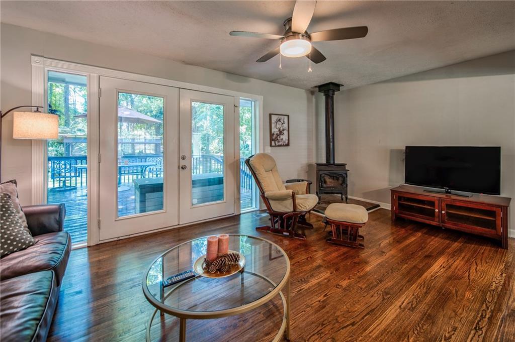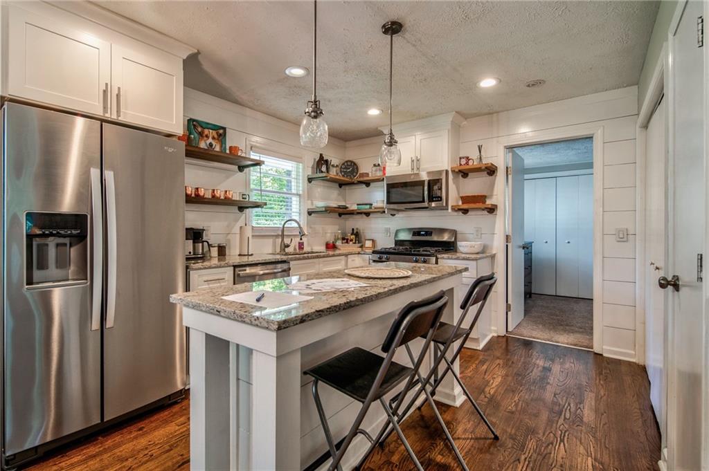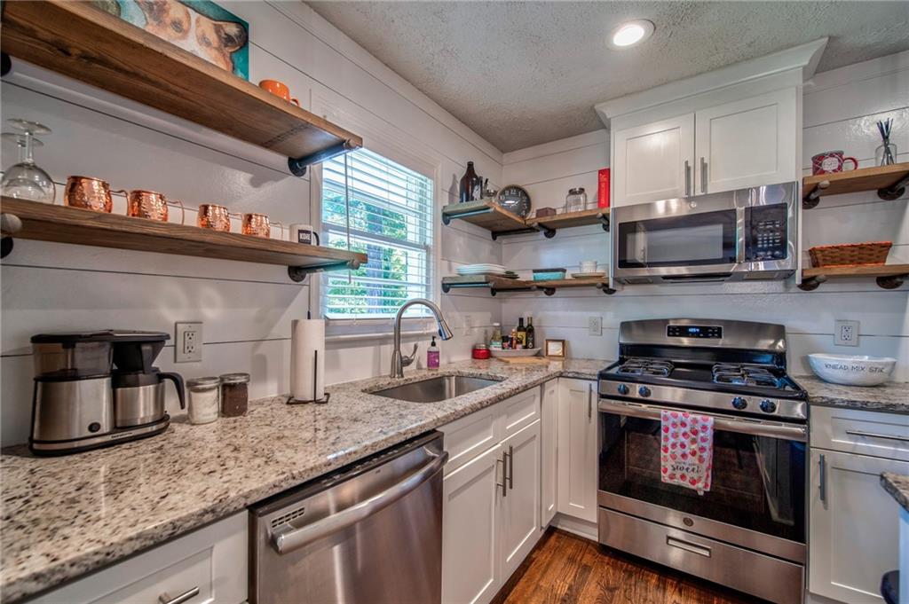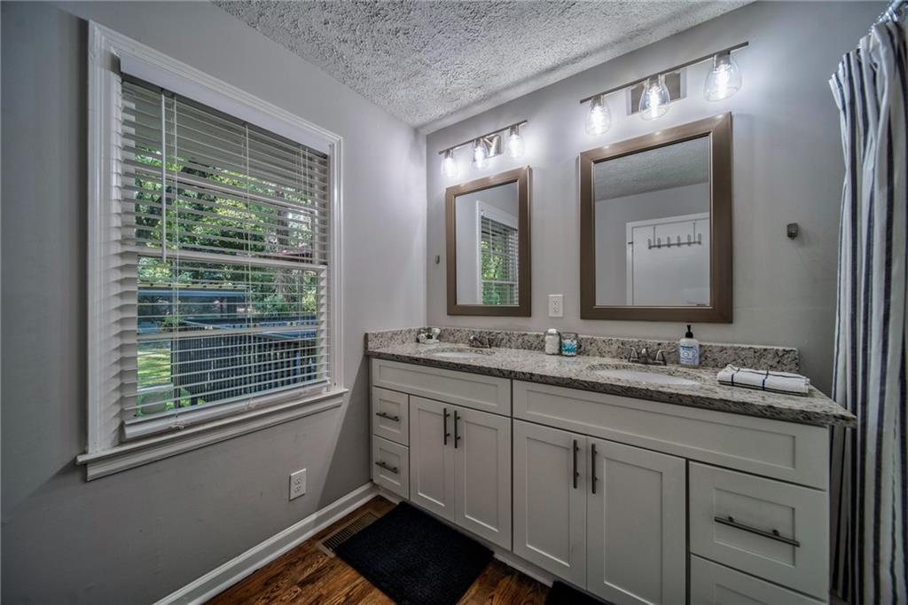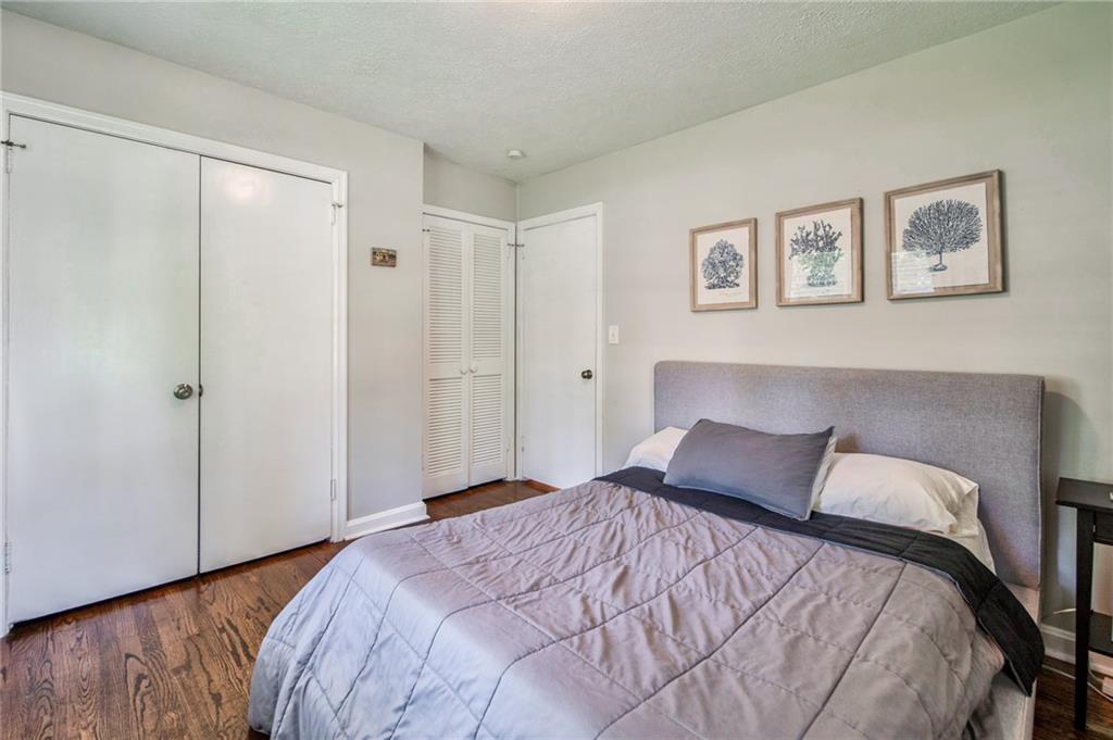 Fully renovated, four-sided brick mid-century ranch is situated on nearly ¾ of an acre with a fenced yard, located in a quiet, well-established cul-de-sac neighborhood. Thoughtfully updated in 2020, this 3-bedroom, 2-bath home combines timeless character with modern conveniences. The single-level design offers minimal steps and an open, inviting floor plan. The primary suite features an ensuite bathroom, custom built-in closets, and ample natural light. The updated eat-in kitchen includes granite countertops and custom shelving, flowing seamlessly into the family room, where a wood-burning stove with a stone hearth provides a cozy focal point. Designer fixtures with dimmable lighting and custom finishes enhance the home’s sophisticated appeal. French doors open to a spacious private deck and garden area, ideal for relaxation or entertaining. The backyard includes a large detached entertaining shed with a built-in brick BBQ, adding versatile outdoor living space. Additional highlights include a newer roof, updated systems, and modern electrical and plumbing. Available to lease fully furnished. Conveniently located just minutes from I-20, I-285, I-75, and Truist Park, this home offers easy access to the Silver Comet Trail, fitness centers, and a variety of grocery stores including Aldi, Lidl, Publix, and Kroger. Local amenities such as CVS, a hardware store, and emergency services are nearby.