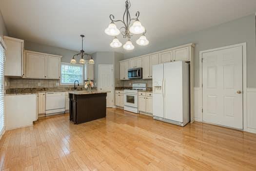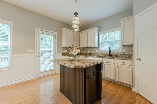Beautiful home situated on a large level lot on a cul-de-sac street. Main level features a formal dining room, family room with cozy fireplace is open to the kitchen with breakfast room and island, office/den and half bath. Kitchen has ample cabinets and counter space, gas range, dishwasher, fridge and microwave. Upper level consists of an oversized primary suite with separate tub/shower and double vanity;3 spacious secondary bedrooms with full bath centrally located and laundry room complete with washer and dryer. The finished terrace level has as extra-large family/rec room with interior/exterior entrance, office, full bath plus an abundance of storage. Great home for entertaining family and friends. Active subdivision with pool, tennis courts and playground. Closed to shopping, medical facilities, restaurants, Blanket's Creek Mountain Bike Trails, and Highway. LAWN MAINTENANCE AND PEST CONTROL INCLUDED.