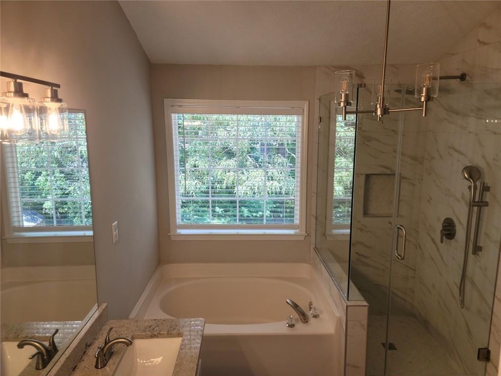 Immediate Move-In Available!! Ready to Move-In Condition and Landcaping Included. ALL Brand-New Exterior Paint and New Front Door. Luxury Vinyl Plank Floors throughout the Main Level. Separate Living, Dining, and Family Room. New Sliding Door to the Private Backyard. Large Owner's Suite and Spacious Secondary Bedrooms with New Ceiling Fans with Light Each Room. Lots of Upgrade Features - Remodeled Bathrooms: New Frameless Shower and New Light Fixtures in the Owner's Bath. New Sliding Shower Doors on the Tub in the Hallway Bath. New Toilets. Washing Machine and Dryer included. New Light Fixtures in the Foyer and Kitchen. Private Wooded Backyard with a Storage Shed. Just 30 Sec to New Coming Soon Exit of I-85 McGinnis Ferry. Convenient for Everything - Shopping's, Restaurants, Malls, and Major Roads. Excellent Gwinnett Schools - Hull MS and Peachtree Ridge HS.