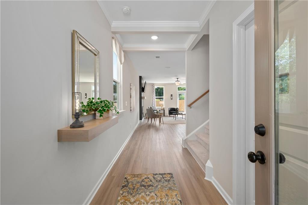 Looking for a fabulous open floorplan with a welcoming foyer, high ceilings and large windows that give an airy feel throughout, and sophisticated accents that add interest and charm? Look no further than The Corban by O’Dwyer Homes. Your chef's delight kitchen boasts a large island that lends more than enough space to prepare, entertain and dine on! This homesite has just been released. Closing on this home will be Winter 2026. If you hurry you can personalize this home at our decorator showroom and select lighting with our lighting design team. Do not miss out on one of our final opportunities at the Collection at Wolf Creek! The kitchen overlooks the family and dining rooms, providing an open feel between the rooms. Entertain on the spacious deck which overlooks the private wooded backyard-the scenery is magnificent! Upstairs is just as impressive, with a spacious office/flex area, two bedrooms and your expansive primary suite with a linen and his and Hers walk-in closets. This amazing Boutique 4-story Townhome with 4 Bedrooms, 3.5 Baths & an Unfinished Basement. *PHOTOS ARE OF OUR MODEL HOME UNTIL THIS HOME IS COMPLETED. The Collection at Wolf Creek Phase II is a Gated Luxury Townhome Community from the high $300’s near Sugarloaf Mills, Suwanee Town Center and 1-85! Built by local award-winning, Certified Professional Home Builder O’Dwyer Homes! Nestled in vibrant Lawrenceville close to shopping, restaurants, parks, farmers markets and festivals, this is the perfect community to Live-Work-Play!