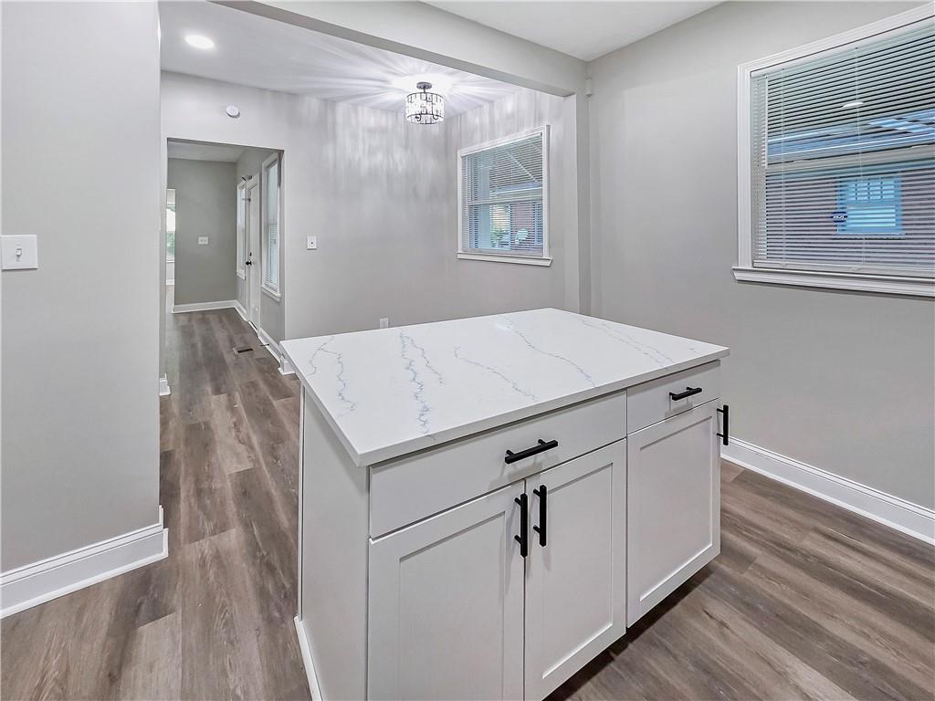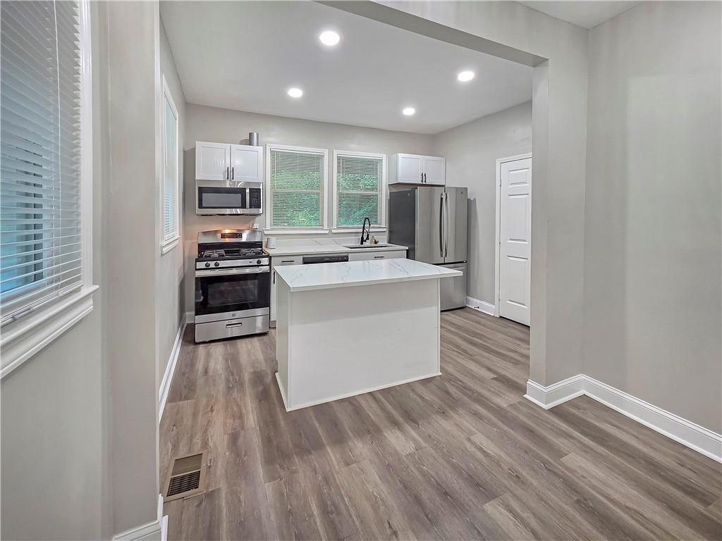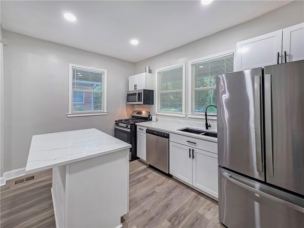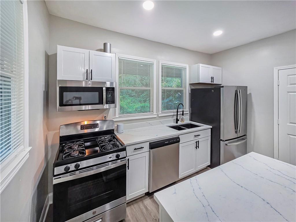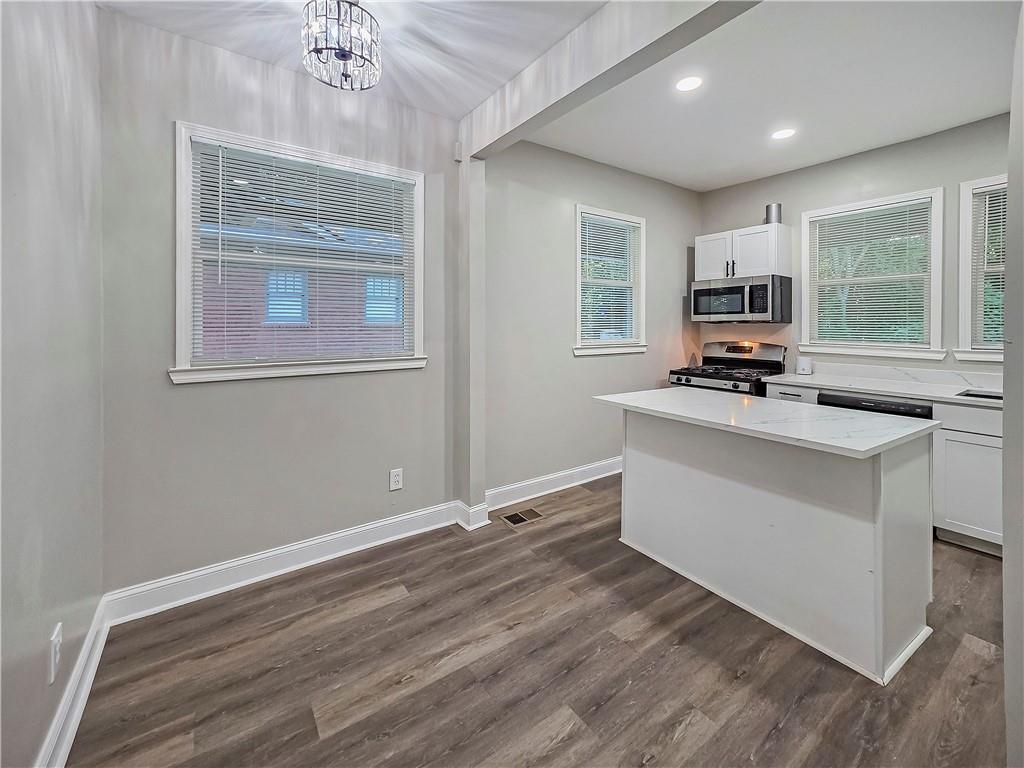 Welcome to this stunningly remodeled 4-bedroom, 2-bath home ideally located on Cascade Avenue with quick access to I-285, I-20, downtown Atlanta, and a variety of shops, restaurants, and attractions. The exterior has been freshly painted in a stylish gray tone and sits on a large, level lot with rear parking. Enjoy morning coffee or evening relaxation on the charming screened front porch, or enter through the covered side porch for everyday convenience. Inside, you'll find a bright and modern interior featuring light gray walls, crisp white trim, and luxury laminate flooring throughout. All windows are dressed with blinds, and both recessed and designer lighting create a warm, updated feel. The spacious living room is filled with natural light from abundant windows and flows into a central dining room complete with an elegant chandelier. The kitchen includes a cozy breakfast nook with a bar, stainless steel appliances, ample cabinetry, generous counter space, recessed lighting, and a pantry. Adjacent is a convenient laundry area with access to the private backyard. Two oversized bedrooms on the main level offer plenty of closet space, ceiling fans, and recessed lighting. They share a beautifully updated bathroom with a designer vanity and a custom-tiled glass-enclosed shower. Upstairs, you'll find a versatile loft space and two additional large bedrooms, each with spacious closets. The second full bathroom features a stylish vanity and a tub/shower combo. Additional Info: Tenant responsible for all utilities, trash service, and lawn care. Monthly $25 Tenant Benefit Package required. Small pet ok with monthly pet rent and admin fee. Shared driveway. Don't miss this opportunity to live in a beautifully updated home in a prime Atlanta location!