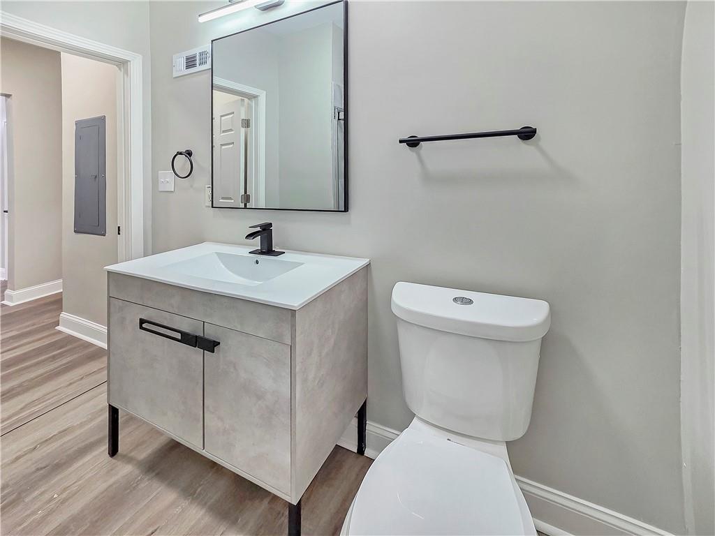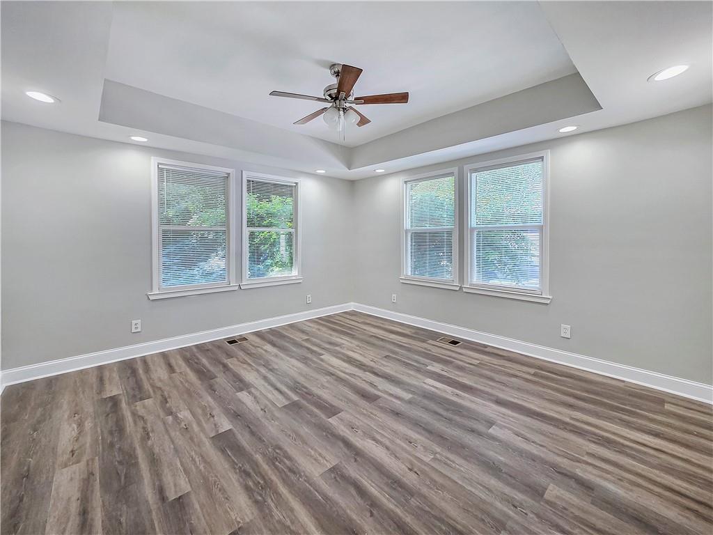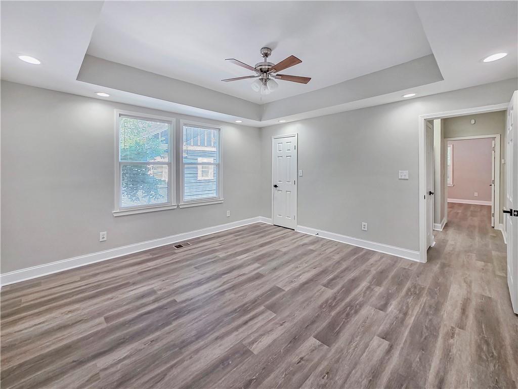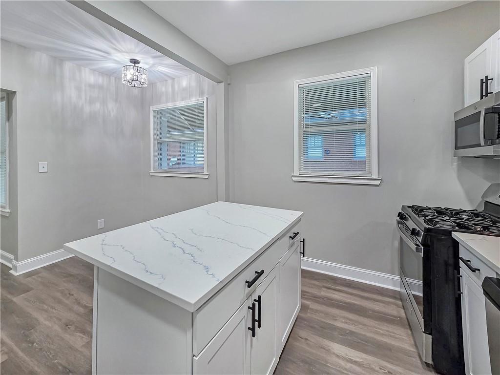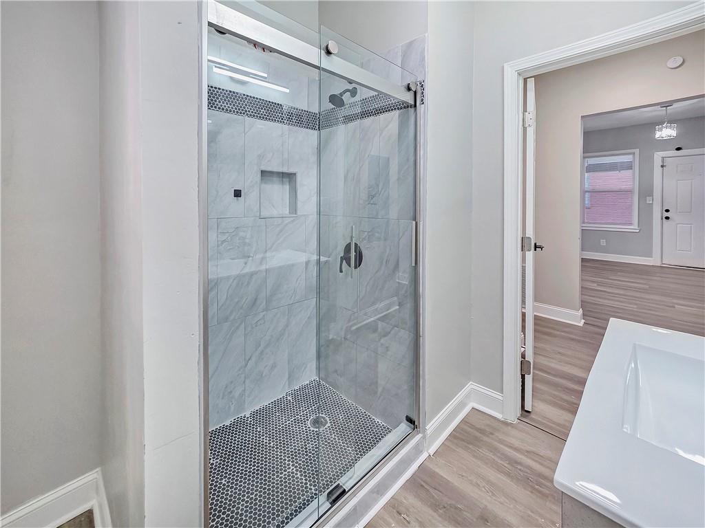 Welcome to this stunningly remodeled 4-bedroom, 2-bath home ideally located on Cascade Avenue with quick access to I-285, I-20, downtown Atlanta, and a variety of shops, restaurants, and attractions. The exterior has been freshly painted in a stylish gray tone and sits on a large, level lot with rear parking. Enjoy morning coffee or evening relaxation on the charming screened front porch, or enter through the covered side porch for everyday convenience. Inside, you'll find a bright and modern interior featuring light gray walls, crisp white trim, and luxury laminate flooring throughout. All windows are dressed with blinds, and both recessed and designer lighting create a warm, updated feel. The spacious living room is filled with natural light from abundant windows and flows into a central dining room complete with an elegant chandelier. The kitchen includes a cozy breakfast nook with a bar, stainless steel appliances, ample cabinetry, generous counter space, recessed lighting, and a pantry. Adjacent is a convenient laundry area with access to the private backyard. Two oversized bedrooms on the main level offer plenty of closet space, ceiling fans, and recessed lighting. They share a beautifully updated bathroom with a designer vanity and a custom-tiled glass-enclosed shower. Upstairs, you'll find a versatile loft space and two additional large bedrooms, each with spacious closets. The second full bathroom features a stylish vanity and a tub/shower combo. Additional Info: Tenant responsible for all utilities, trash service, and lawn care. Monthly $25 Tenant Benefit Package required. Small pet ok with monthly pet rent and admin fee. Shared driveway. Don't miss this opportunity to live in a beautifully updated home in a prime Atlanta location!