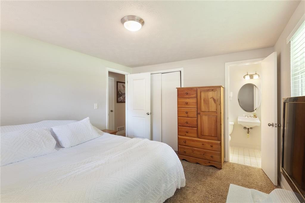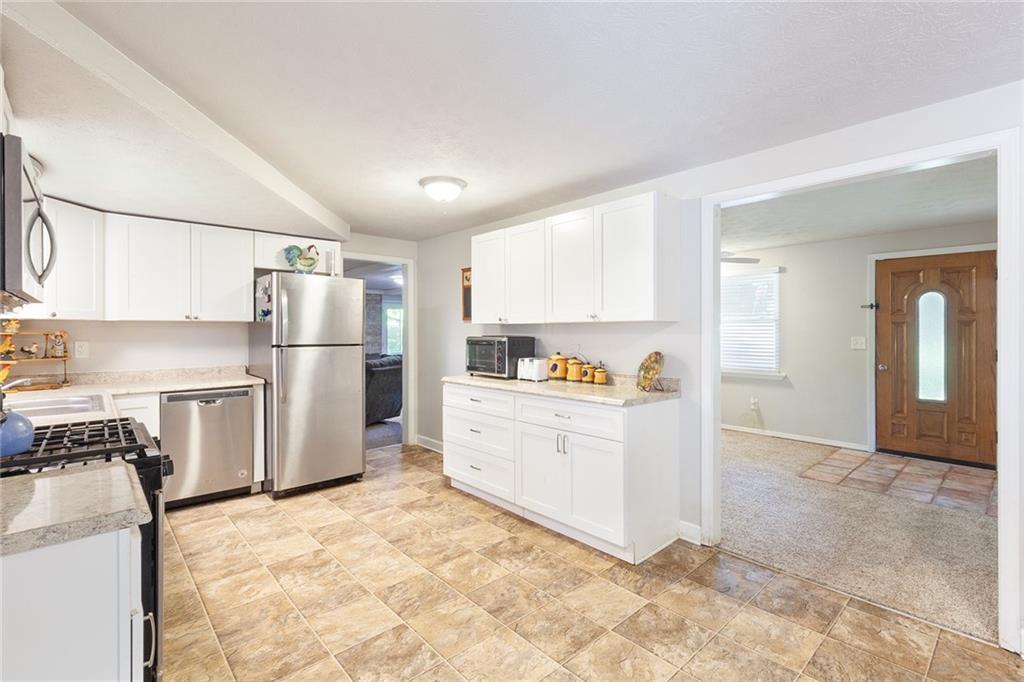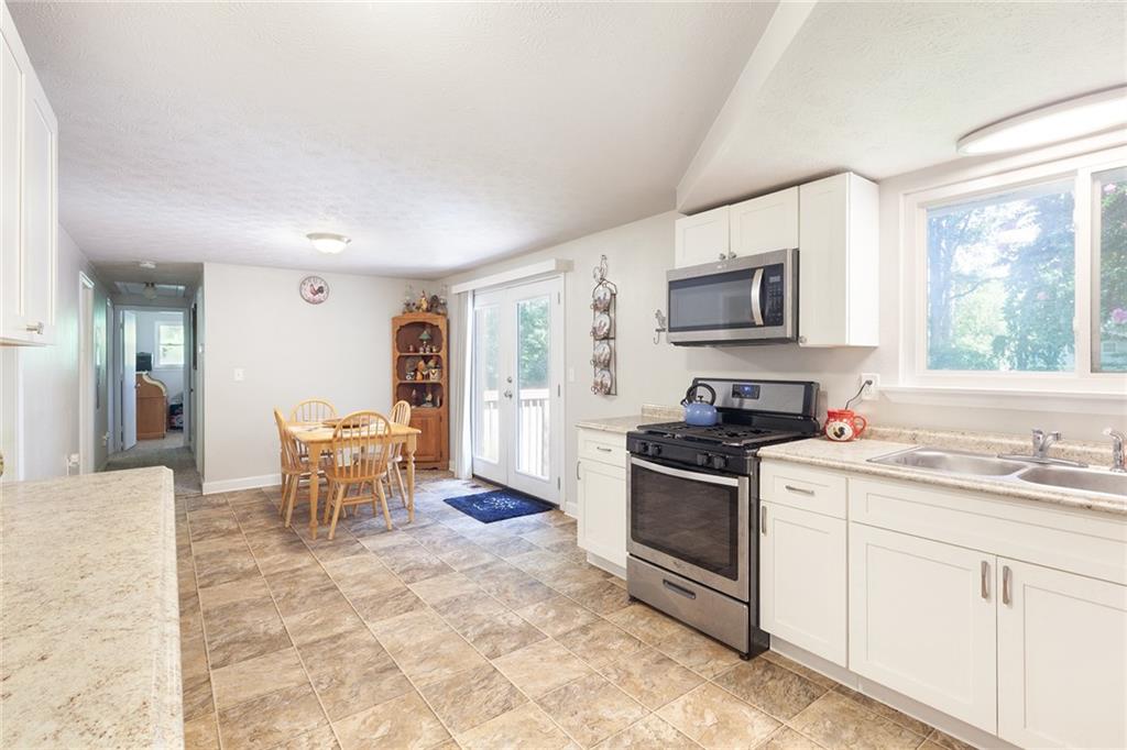 This beautifully maintained 4-sided brick ranch sits on a large, level wooded lot on a peaceful street, offering the perfect blend of privacy and convenience. The home features a fully remodeled kitchen with modern stainless steel appliances, providing an ideal space for cooking and entertaining. The spacious family room showcases elegant French doors that open directly to a charming side patio, creating seamless indoor-outdoor living. Storage is not an issue with the large storage shed on the property. The property's mature trees and level terrain provide a serene, park-like setting that feels like a private retreat. Despite the tranquil atmosphere, you'll enjoy easy access to major transportation routes, with the interstate just minutes away. This well-appointed ranch offers comfortable single-level living with room to enjoy both indoor and outdoor spaces. The combination of the wooded setting and convenient location makes this property ideal for those seeking a peaceful home with modern conveniences.