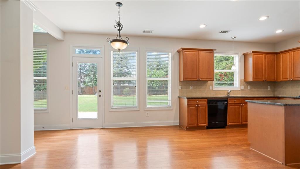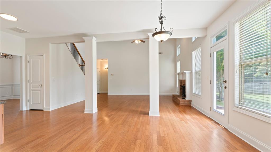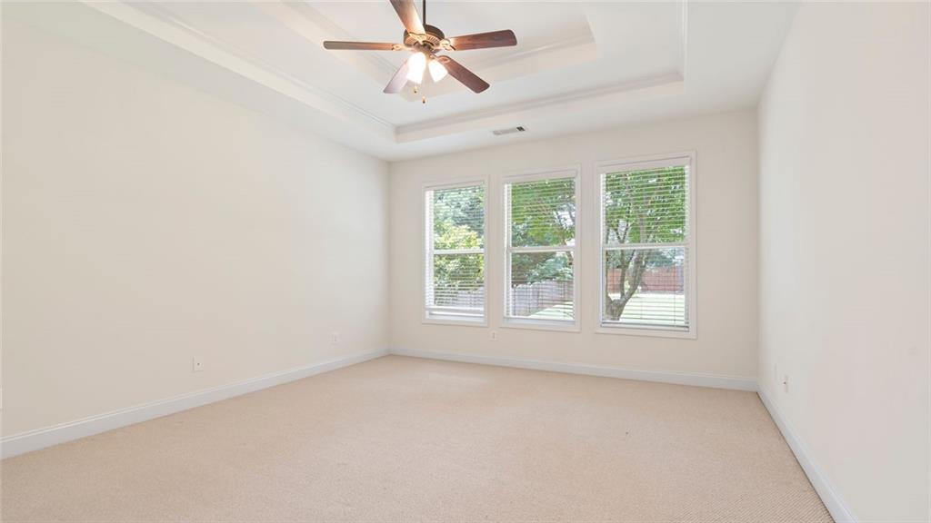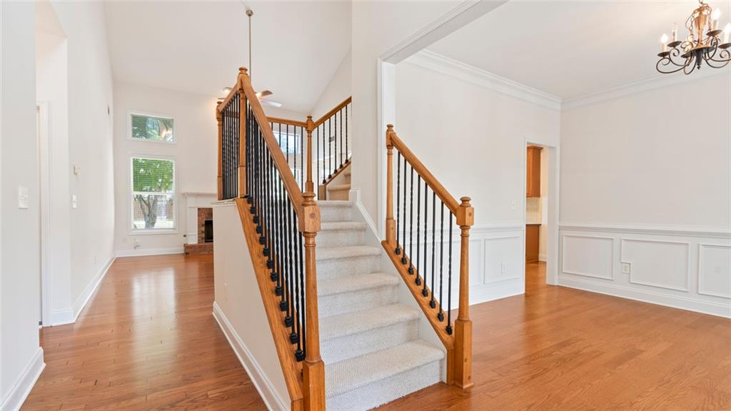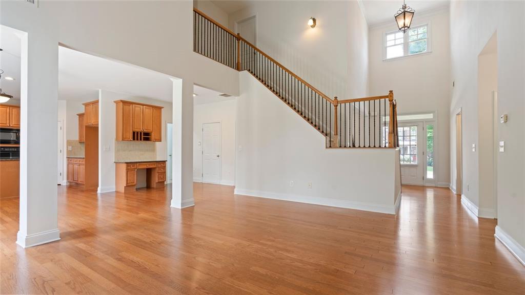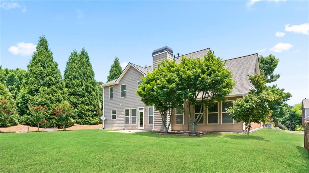 Light-filled spacious home with master on main in sought-after Buford HS district. This home features an open concept, enter through the two-story foyer into the grand two-story living room, leading to the chef's kitchen with stone counters. Large master on main with tray ceilings and bathroom with extra tall ceilings. Three more generous bedrooms and two baths upstairs. Spacious, level lot. Wonderful opportunity in growing Flowery Branch.