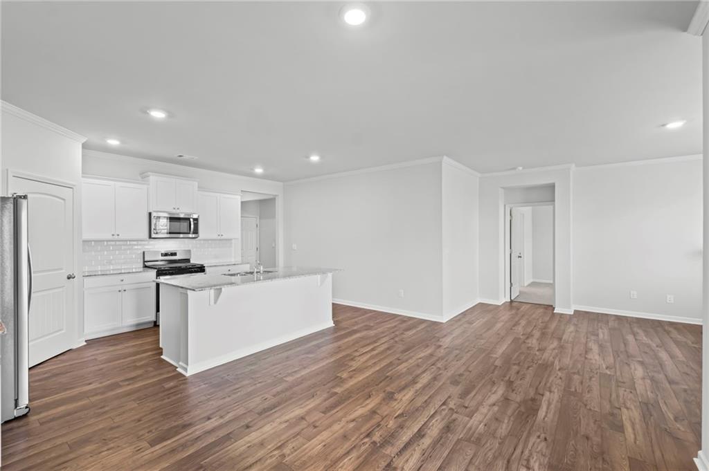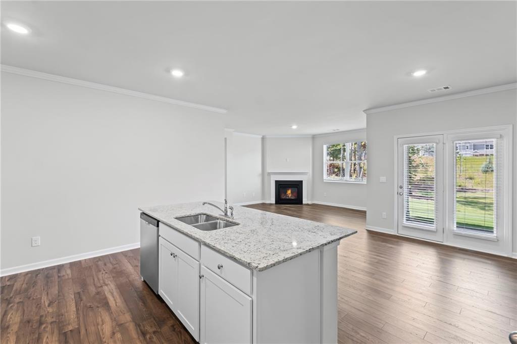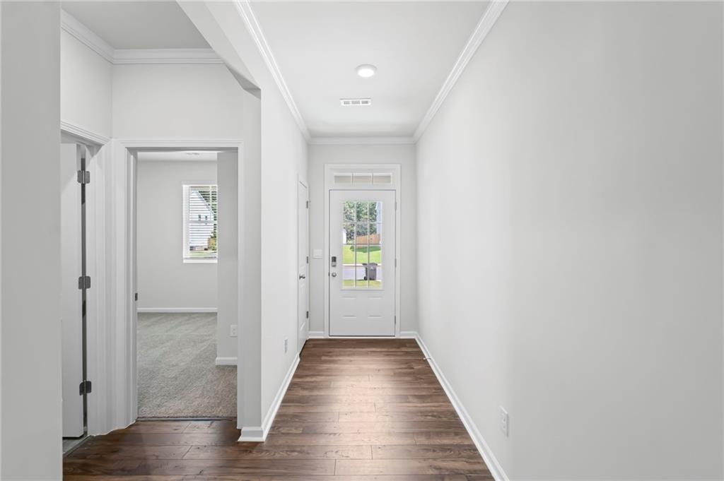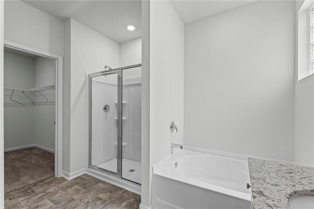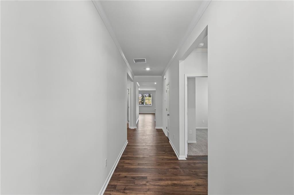 Welcomes you to 65 Grove Springs Court, a new construction single-family home in Parkside at Carter Grove community. This Cali, 4 bedroom and 2 bathroom ranch floor plan home, has a lot to offer your family in the 1,774 square feet. Your family can enjoy spending time outside in the large, flat backyard. A long foyer leading to the main living area and bedrooms welcomes you as you enter this home from the front porch. At the front of the home, 2 secondary bedrooms are split by the guest bathroom. Each bedroom boasts a walk-in closet, including the 3rd bedroom that is the perfect size for an office space or guest bedroom. The laundry room sits right outside of this room providing easy access for all to do laundry. Continuing deeper into the home, you walk into the open concept kitchen and living area. The chef in the family will enjoy all the kitchen has to offer including, stainless-steel appliances, granite countertops, white shaker cabinets, and a large walk-in pantry. An oversized island separates the kitchen from the dining area. Enjoy spending time with family and friends in the spacious living room or outside on the covered back patio. The primary suite is tucked away to the back of the house, off of the living room, providing privacy homeowners can use to relax and unwind. The primary suite comes with a considerable walk-in closet, dual vanity, and separate walk-in shower and soaking tub.