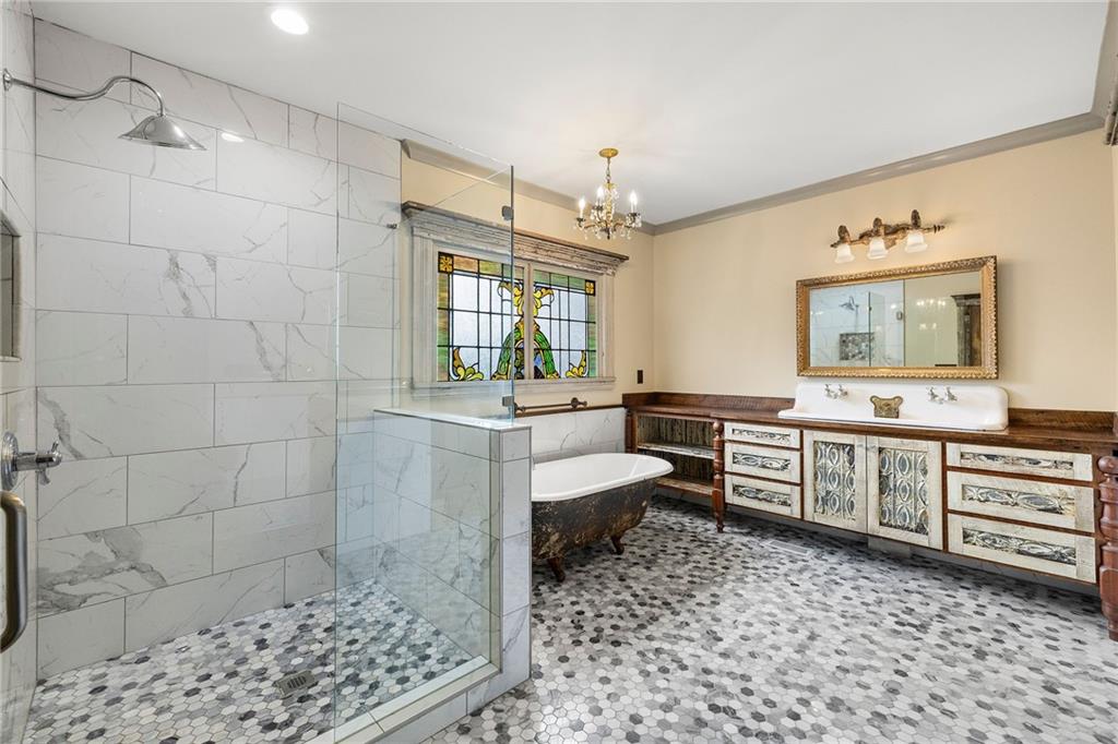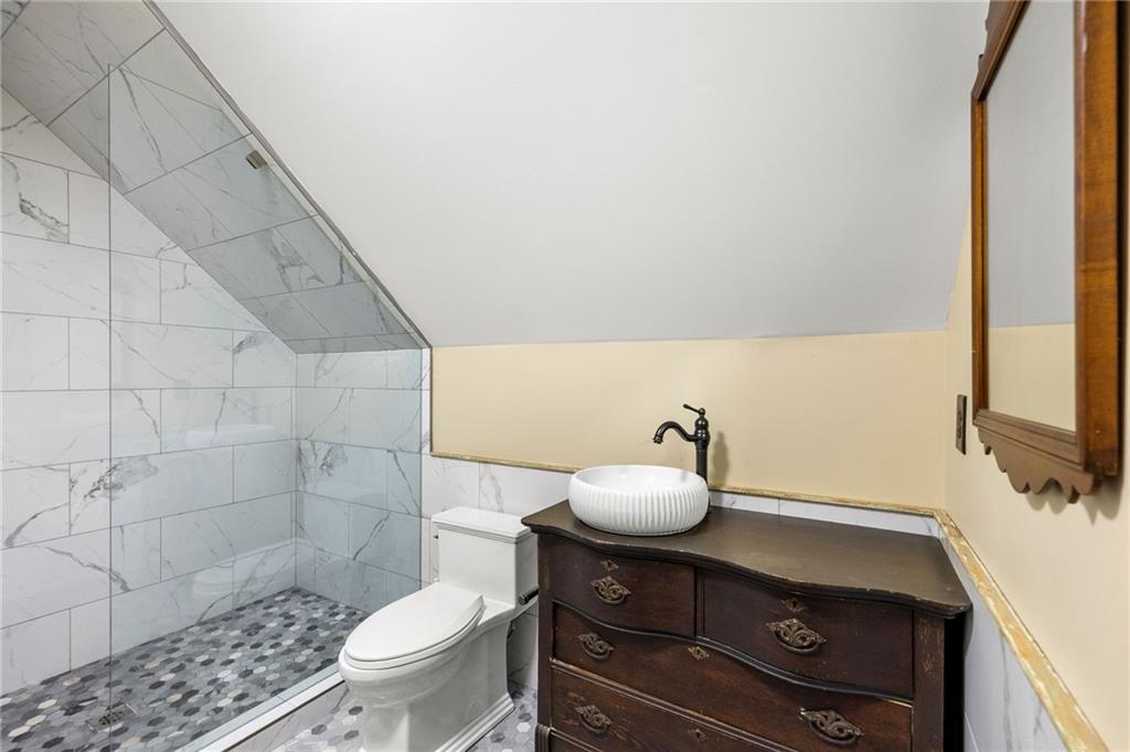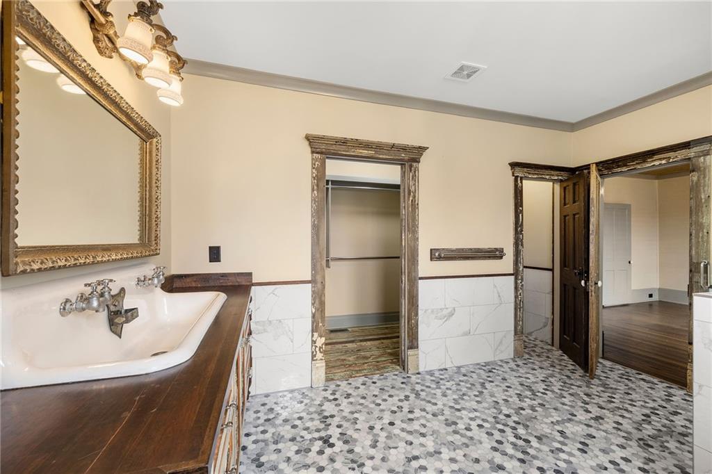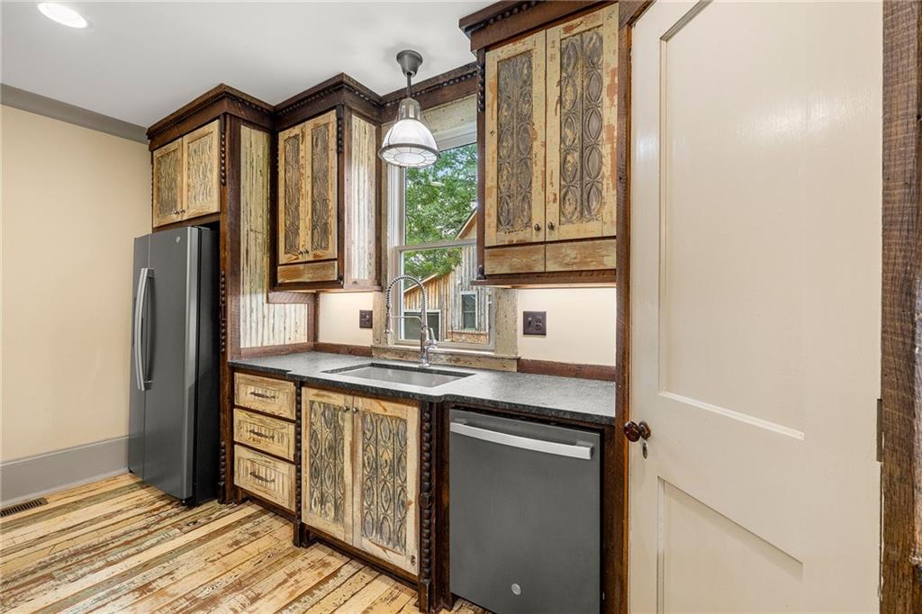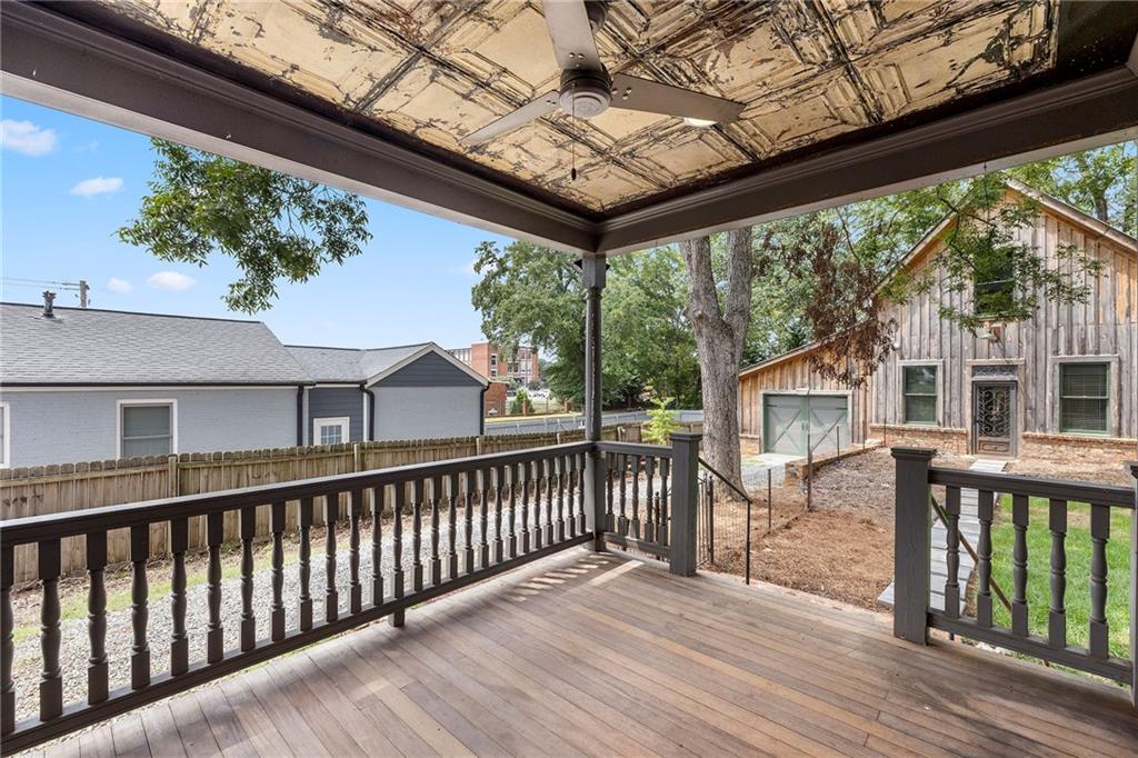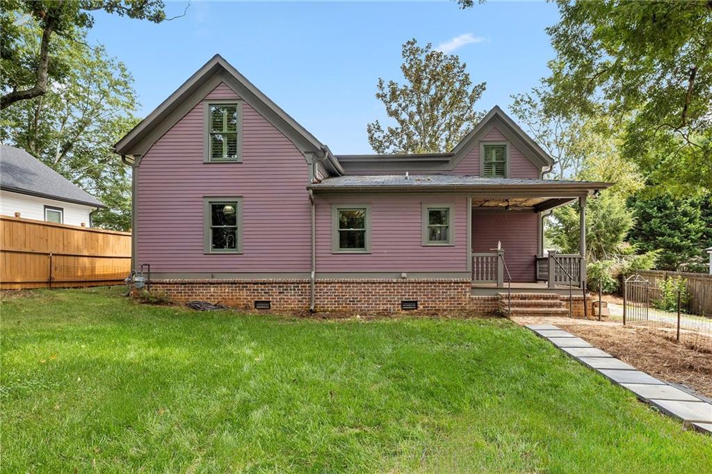 *** City of Buford Historic Home *** This beauty has been brought back to life to honor its original features, past and charm! A one of a kind gem in one of the NATION's best cities for families and academics. Built in 1900, this homes flawlessly blends original Victorian/Craftsman style as noted with the wrap around front porch, revitalized stained glass front door and windows, original period appropriate color palette, mature trees, front porch swing...and the BACKYARD! Original barn/garage has been expanded and converted into a 2 car enclosed garage with a 1 car covered passthrough and an additional 500 Sq Ft finished entertainment loft above complete with a half bath. Space can be transformed into a media room, dry bar, office, yoga studio, you name it! Private driveway access in the front and additional access through the back. The interior is livable art. Features include an elongated foyer hallway, original heart pine flooring, tin ceilings, expansive living/dining space, an additional front parlor, craftsman molding, plantation shutters and a modernized kitchen with stainless steel appliances, a large stainless sink, and a massive kitchen island. All crafted with unique cabinetry and stone countertops! The master ensuite is on the main floor as well complete with a walk-in closet, a walk-in glass shower, clawfoot tub, and a beautiful double farmhouse sink vanity. A large laundry room, powder room and back deck access round out your main living space. Upstairs the character continues with a large hallway loft perfect for reading or storage, 3 additional bedrooms and two full bathrooms. Walk to Tannery Row and Historic Main Street where you can relax at Bare Bones, Aqua Terra Bistro, Meander Brewing, Tchin Tchin, Elixir, Buford Station Creamery and MORE! Golfcart friendly community! Currently occupied and will be available September 1st. Contact Michael for a private tour!