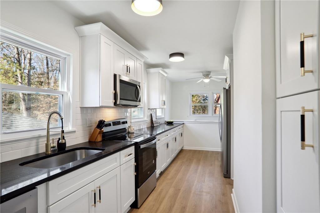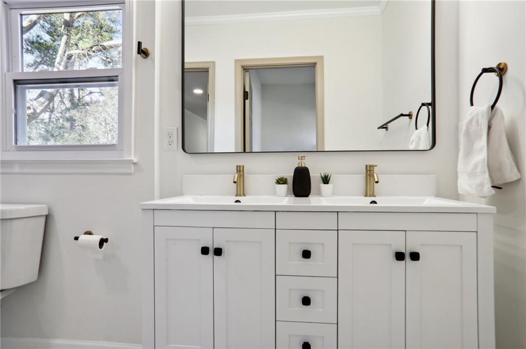 Fully renovated 4 bedrooms 2 bathrooms home in a corner lot in West Lake Heights subdivision. An open living-dining room space with hardwood floors welcomes you to this cozy home with a large Master bedroom, master bathroom with double vanity, walk-in closet and beautiful tile work. In its kitchen you will find brand-new Stainless Steel appliances, white shaker cabinets and gorgeous granite countertop. The stairwell leads you to the upper where you'll find 2 bedrooms with a separate thermostat. Lower level features an open space with exterior entry and patio perfect for entertaining and family gatherings. Less than 1 mile from West Lake Marta Station and I-20, minutes from Beltline, parks, universities, public transportation and restaurants in West Atlanta. Minimum credit score 650, one month security deposit. Electric, gas, trash and water bill most be under tenants name before move-in.